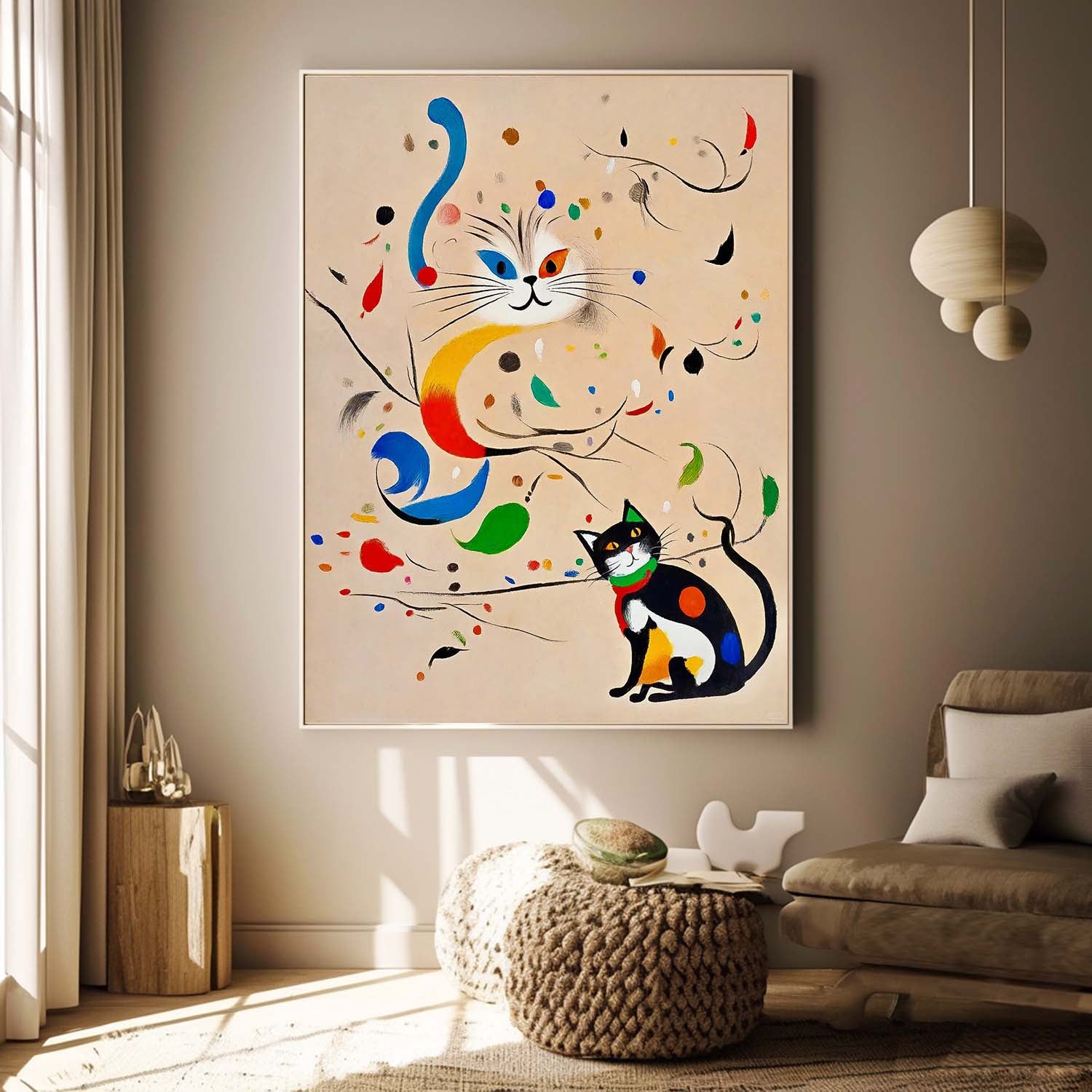 Colorful Modern Cat Oil Painting Joan Miró Style Abstract Cat Acrylic Painting Pop Artwork Home Decor