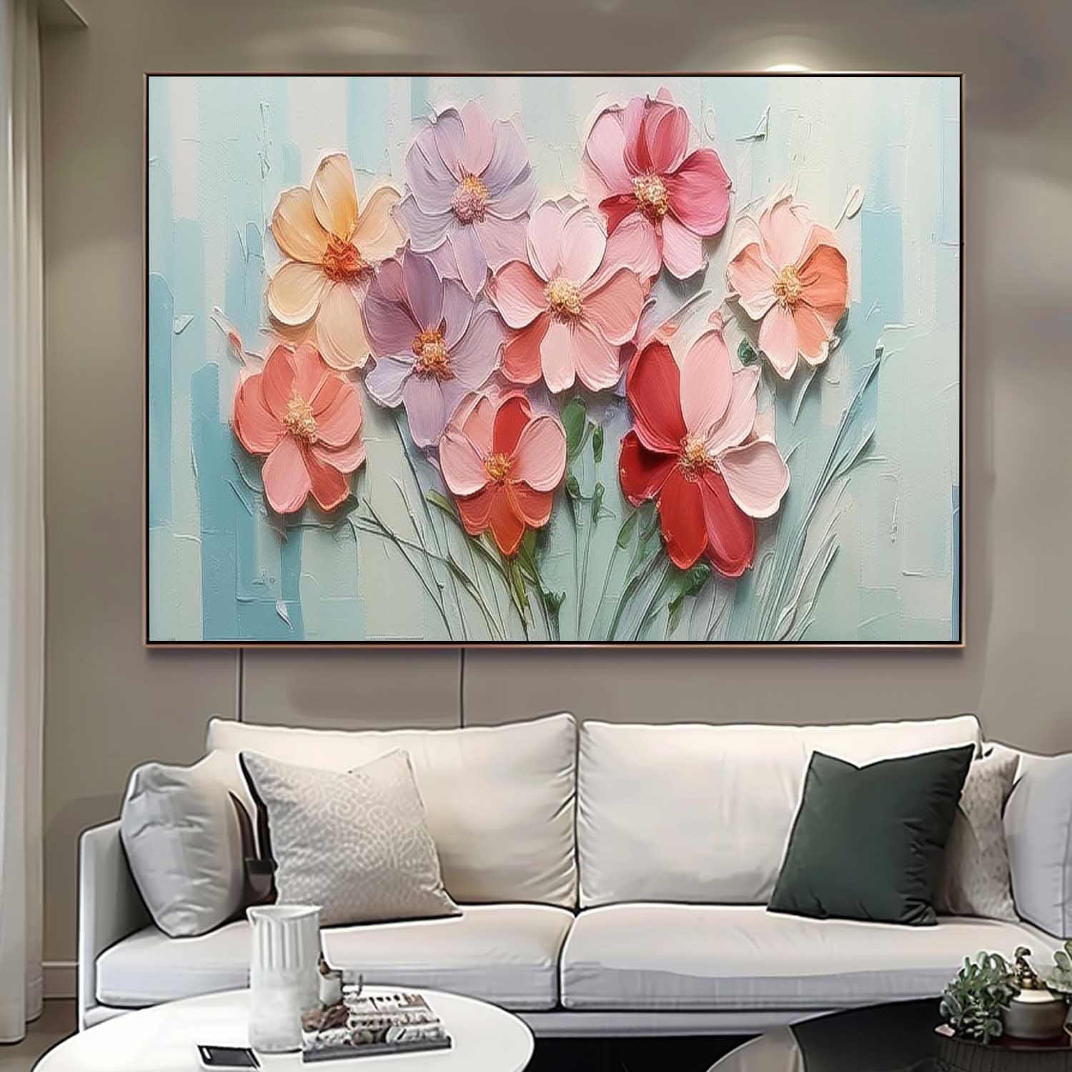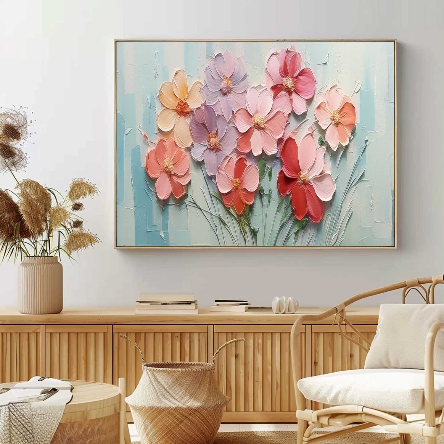 Large Textured Floral Acrylic Painting Spring Flowers Drawing Modern Original Framed Floral Wall Art