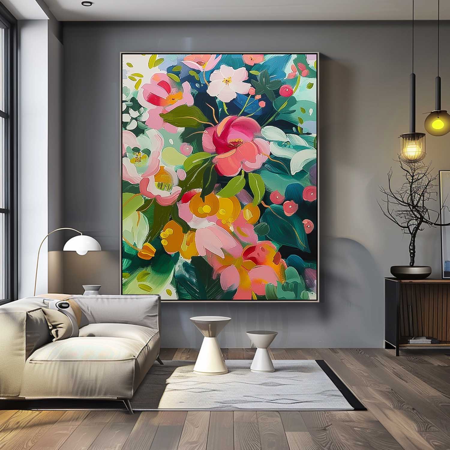 Abstract Flower Oil Painting on Canvas Large Original Watercolor Flowers Art Custom Painting Boho Wall Decor
