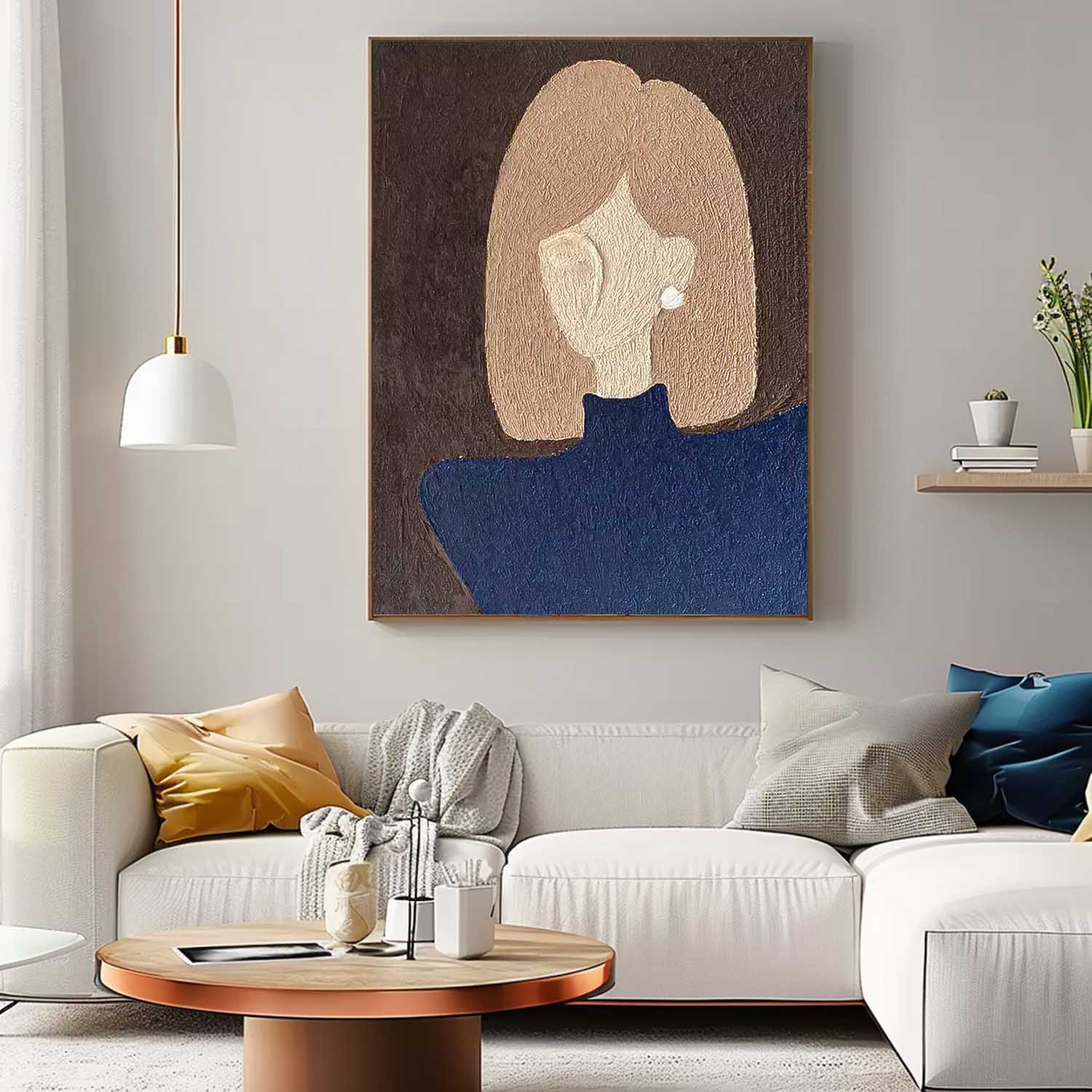 Abstract Character Image oil Painting On Canvas Original Short Hair Girl Wall Art Minimalist Modern Nordic Style