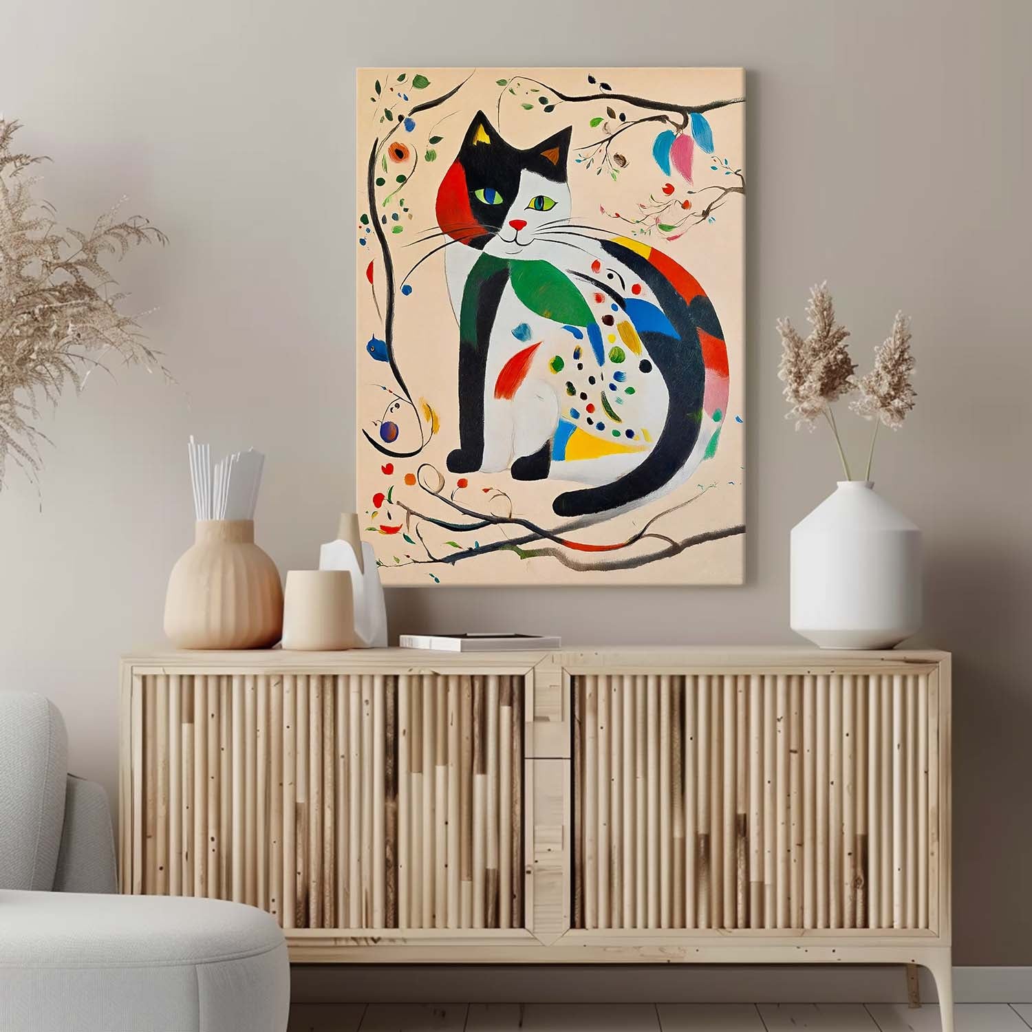 Modern Cat Oil Painting Framed Artwork Joan Miró Style Abstract Cat Childlike Oil Painting Large Cat Pop Art