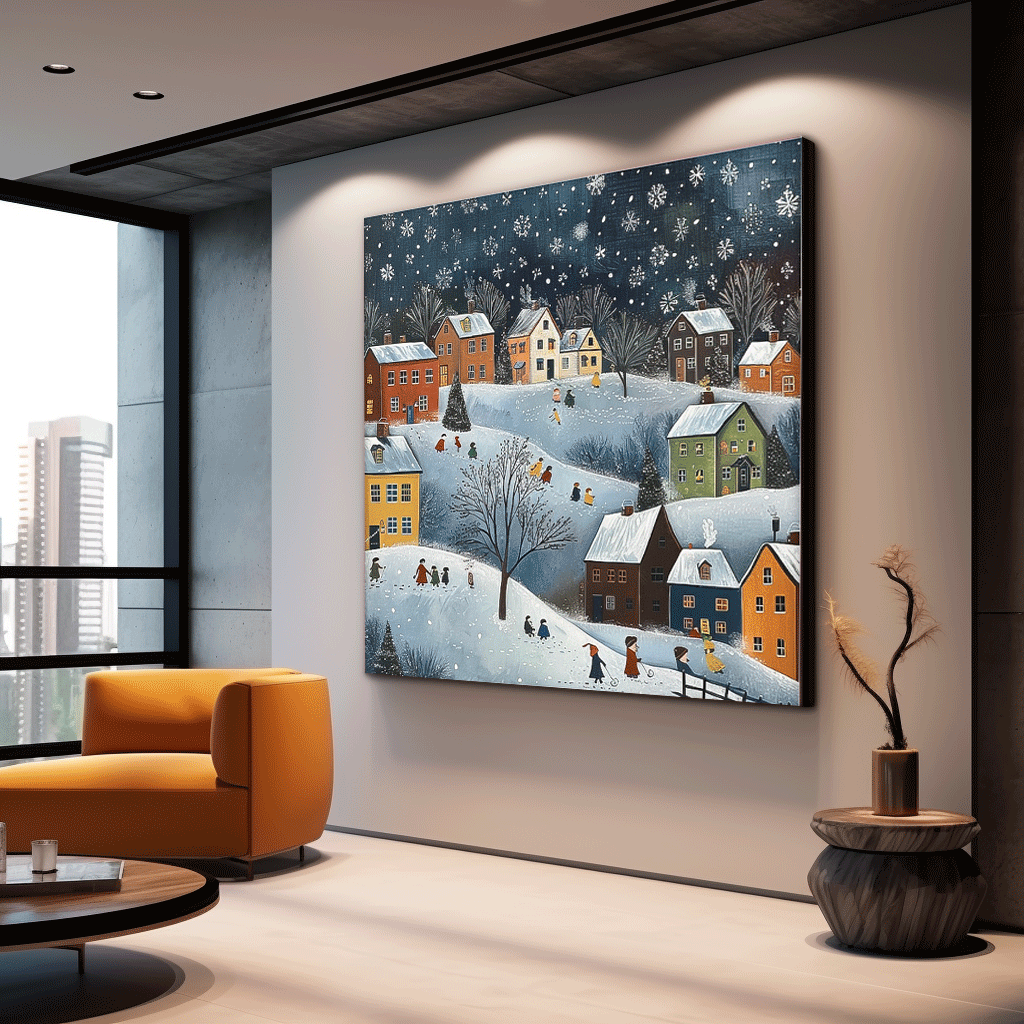 Original Cottage In The Snow Oil Painting Large Winter Wall Art Abstract Landscape Painting Living Room Decor