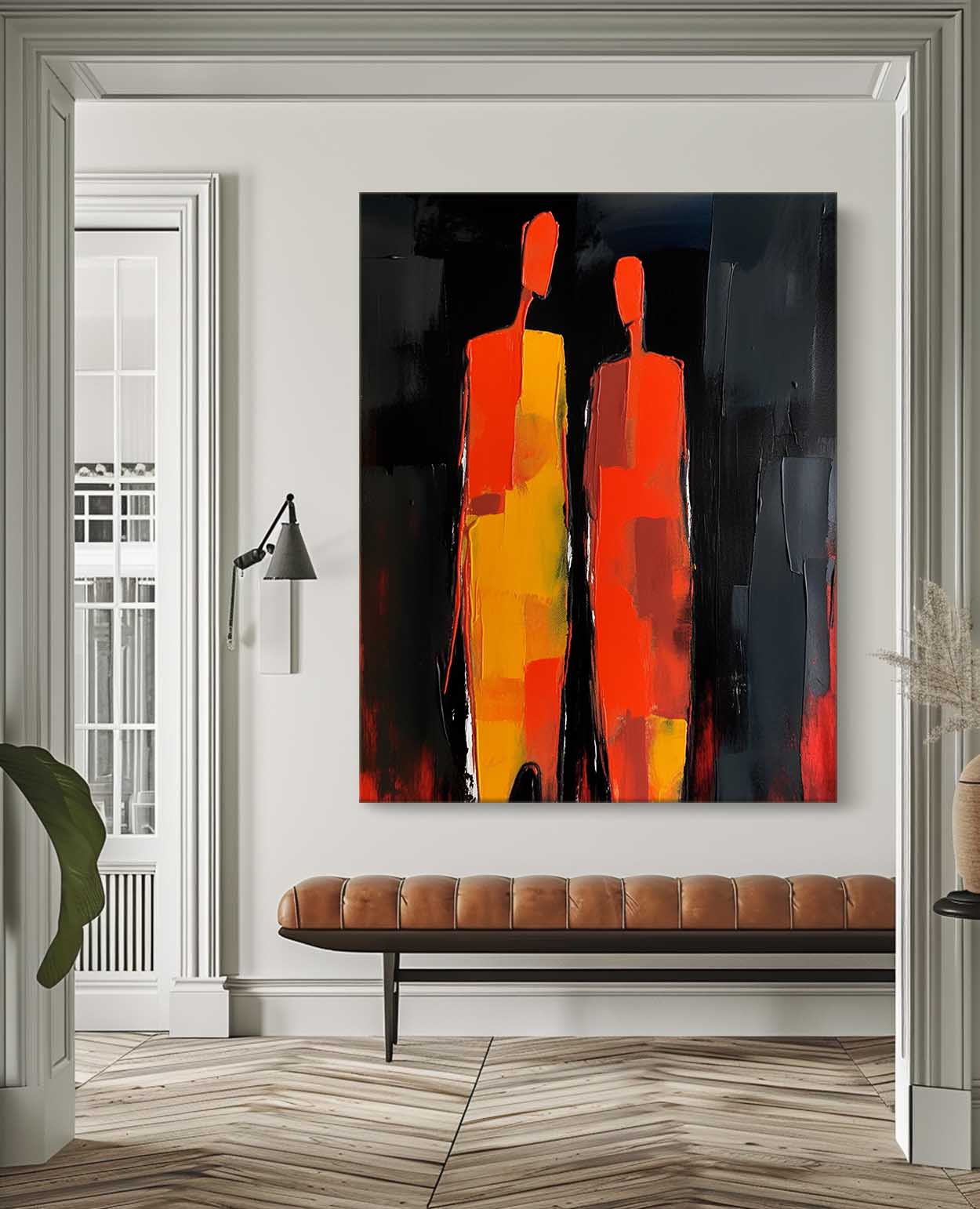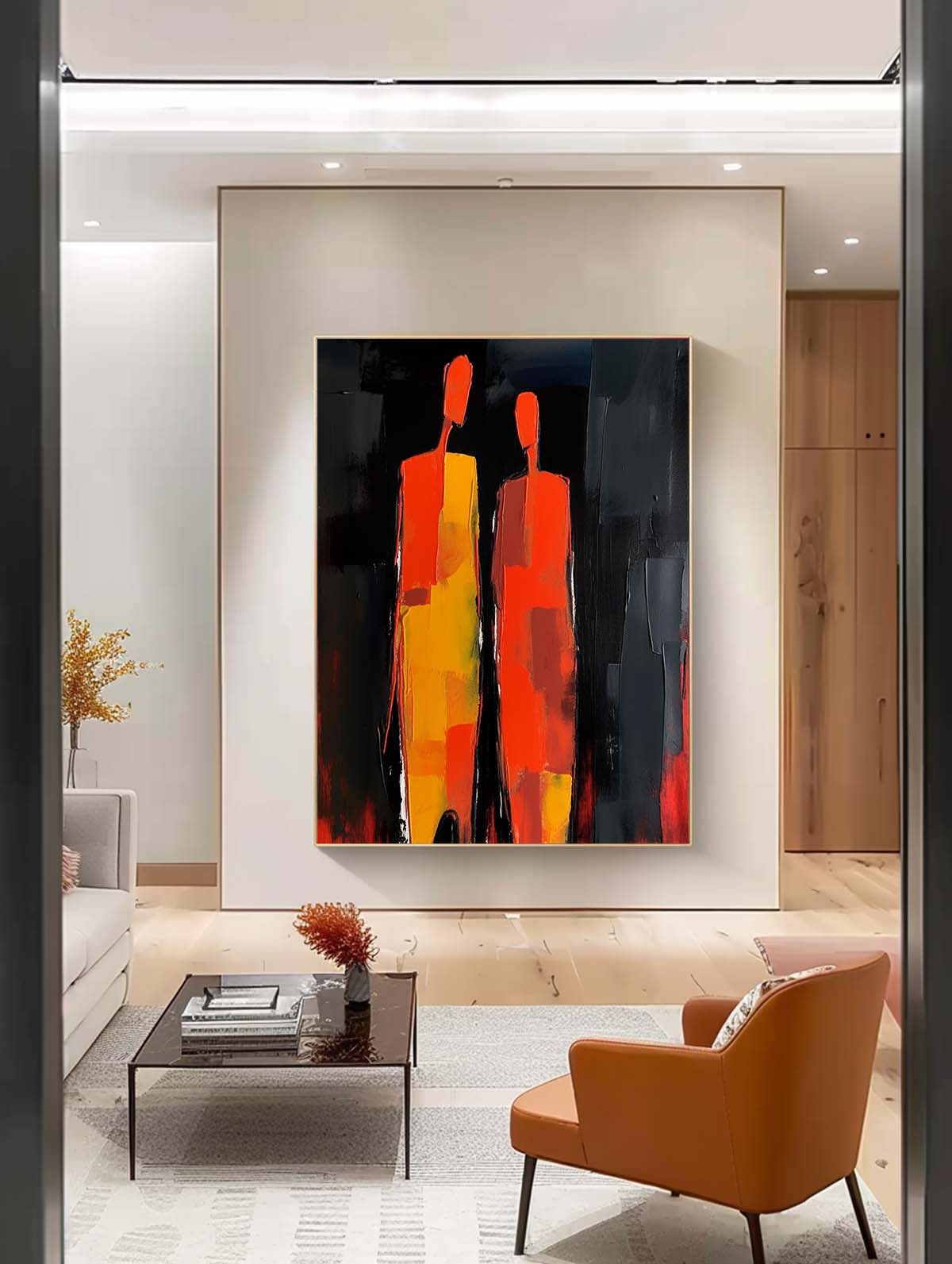 Warm Color Original Abstract Wall Art Character Outline Painting Big Contour Acrylic Painting Framed Artwork