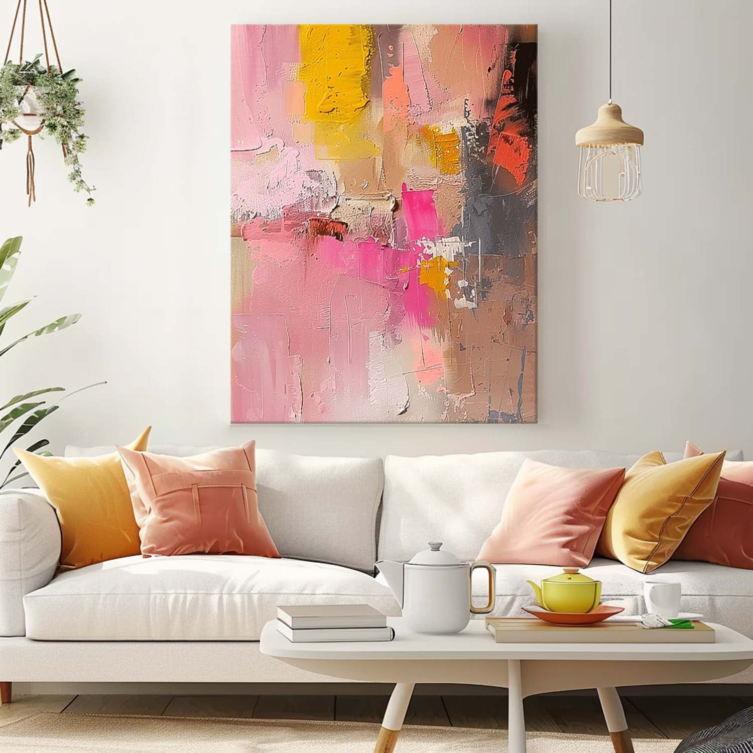 Large Modern Acrylic Painting On Canvas Pink Texture Color Abstract Oil Painting Original Artwork Decor