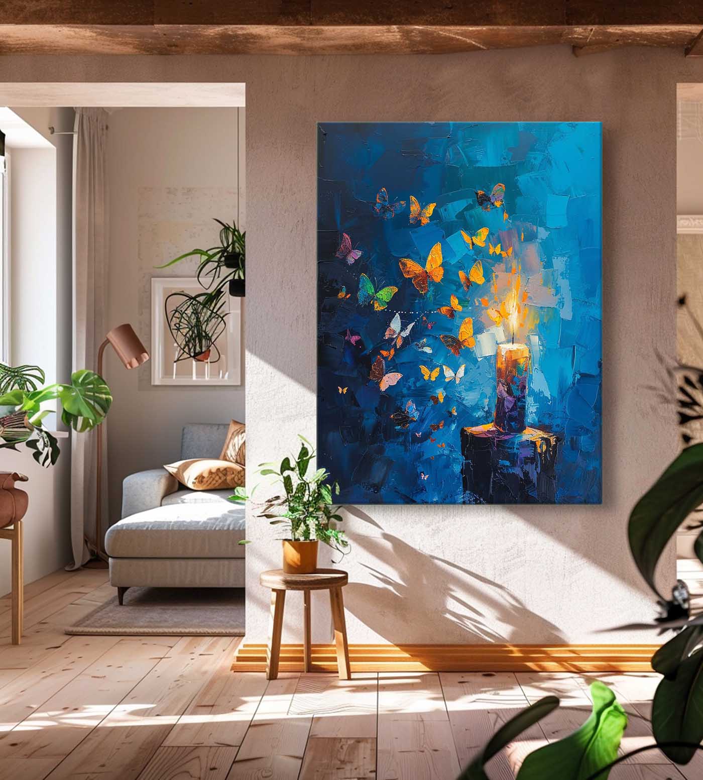 Abstract Still Life Painting Butterfly By Candlelight Acrylic Painting On Canvas Original Artwork Decor