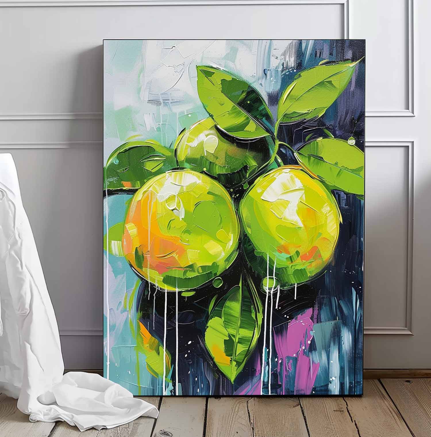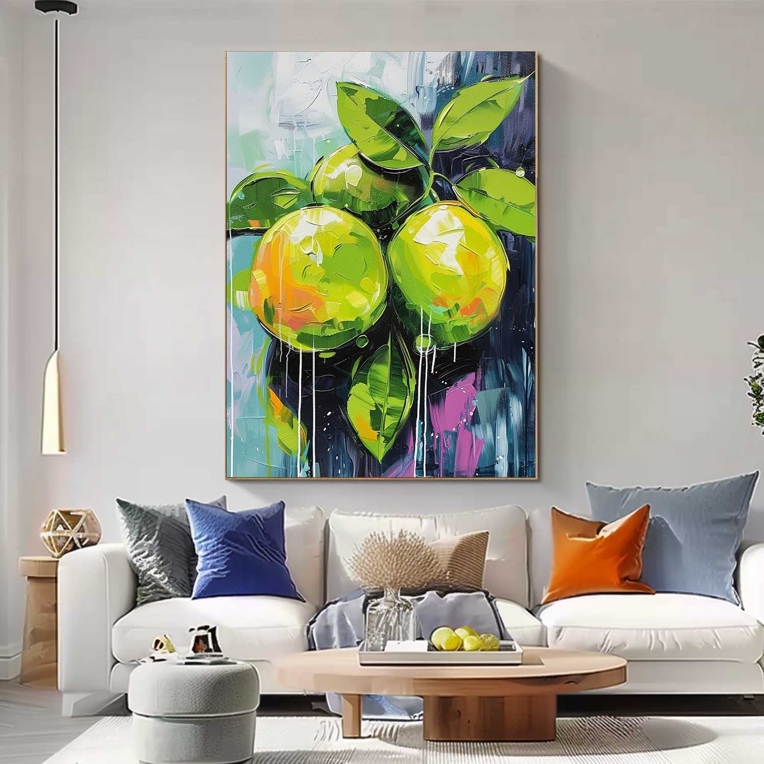 Large Lime Original Artwork Abstract Still Life Painting On Canvas Colorful Fruit Acrylic Painting Gift