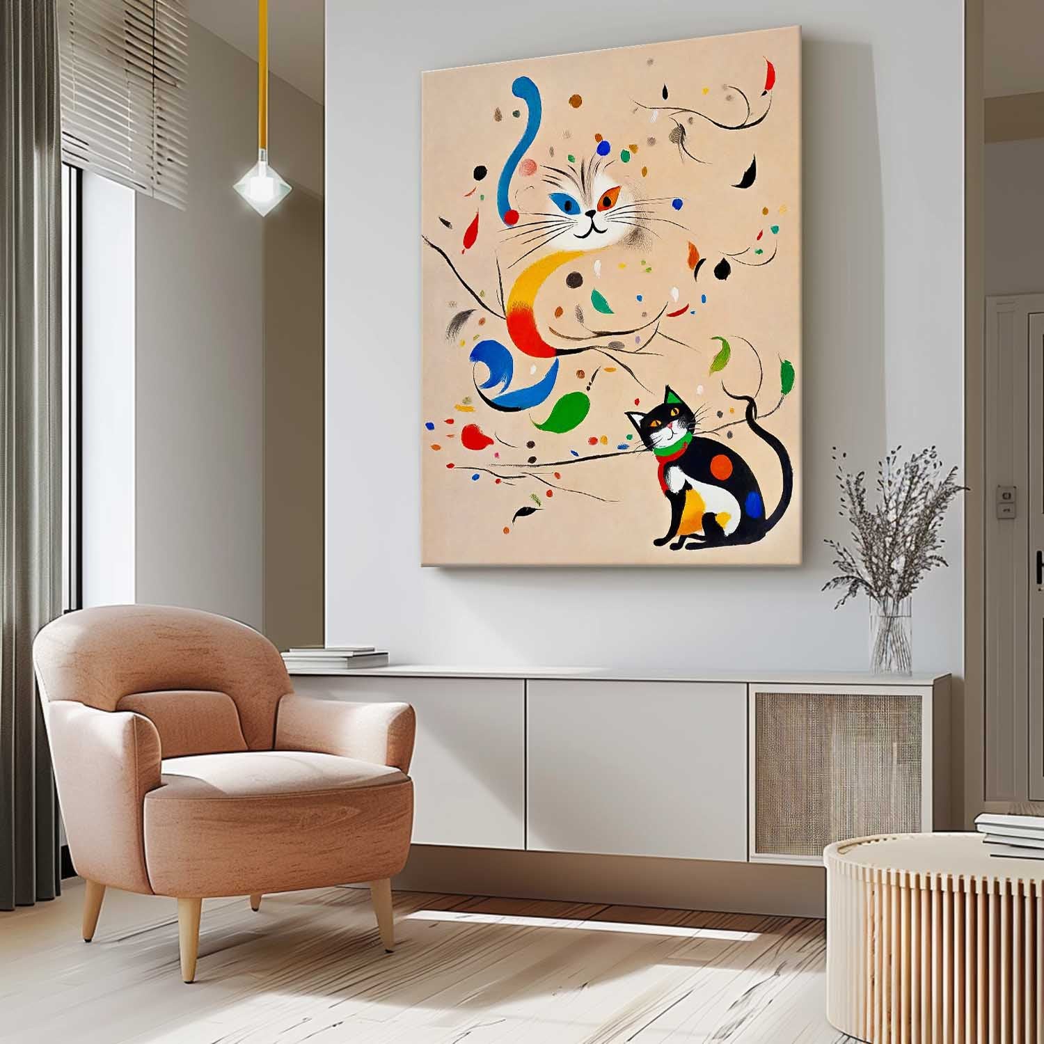Colorful Modern Cat Oil Painting Joan Miró Style Abstract Cat Acrylic Painting Pop Artwork Home Decor