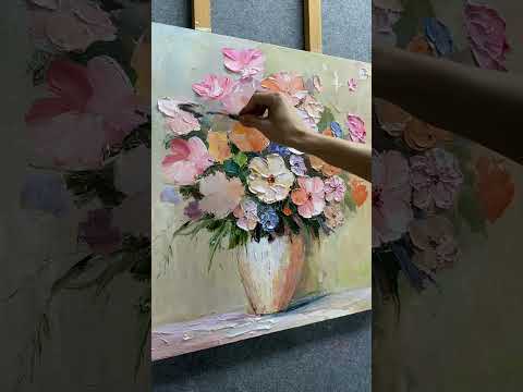 Large Textured Flower Painting Original Exquisite Vase Art Contemporary Blossom Wall Art For Living Room