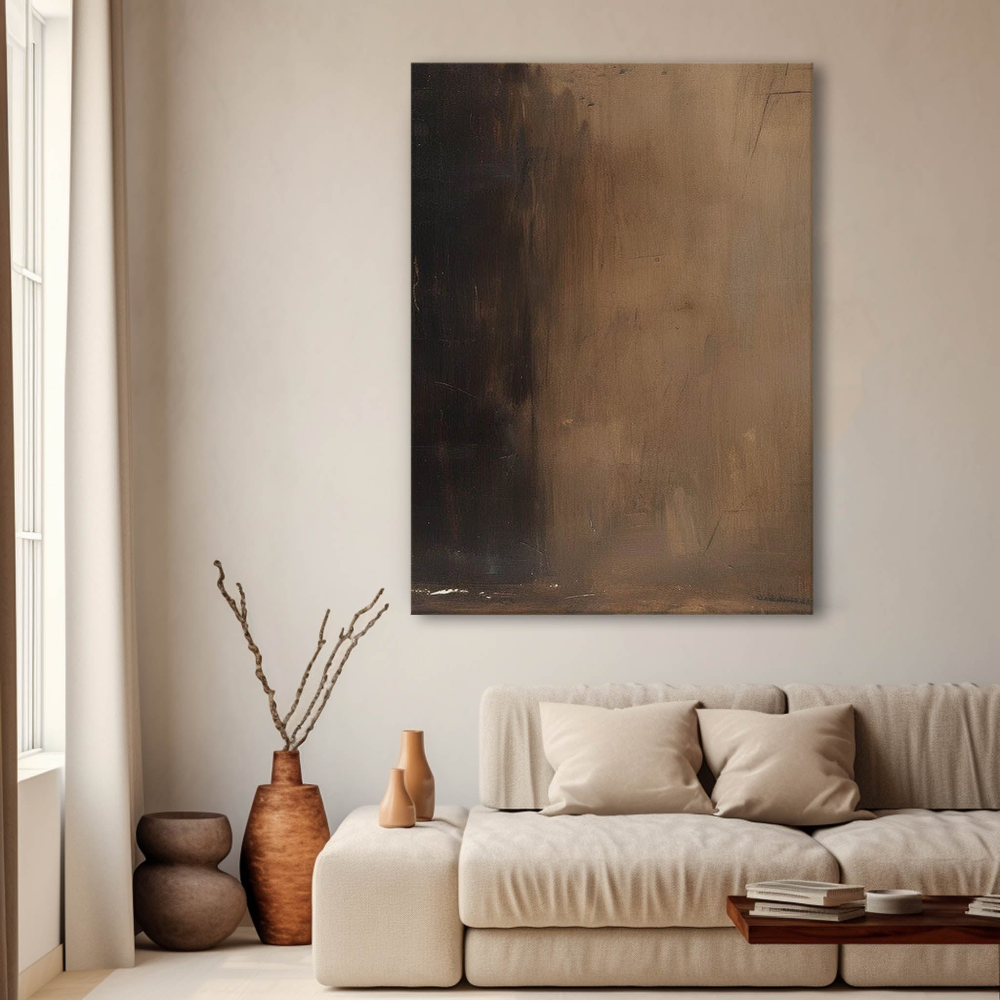 Brown Modern Minimalist  Wall Art Large Original Abstract Oil Painting On Canvas For Living Room