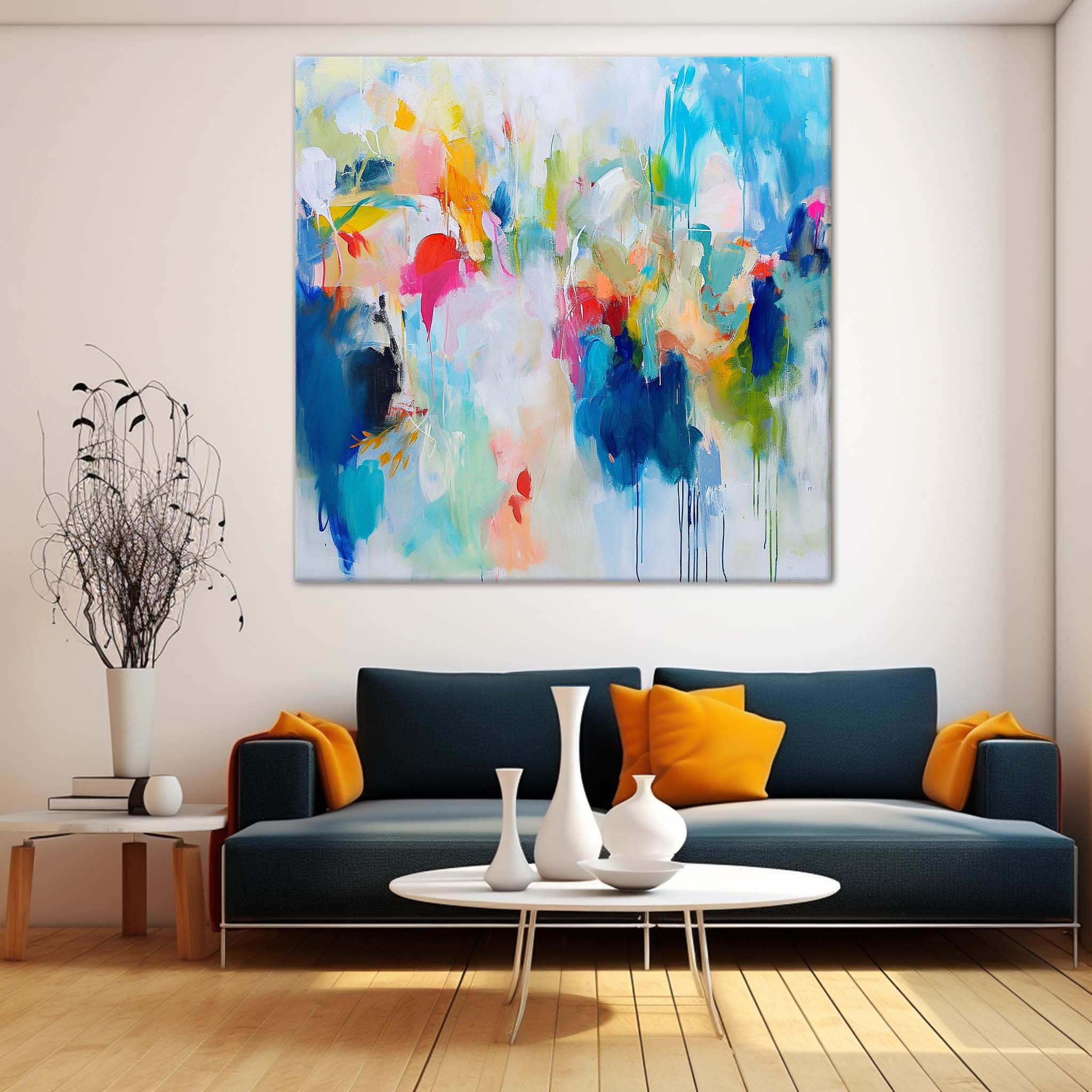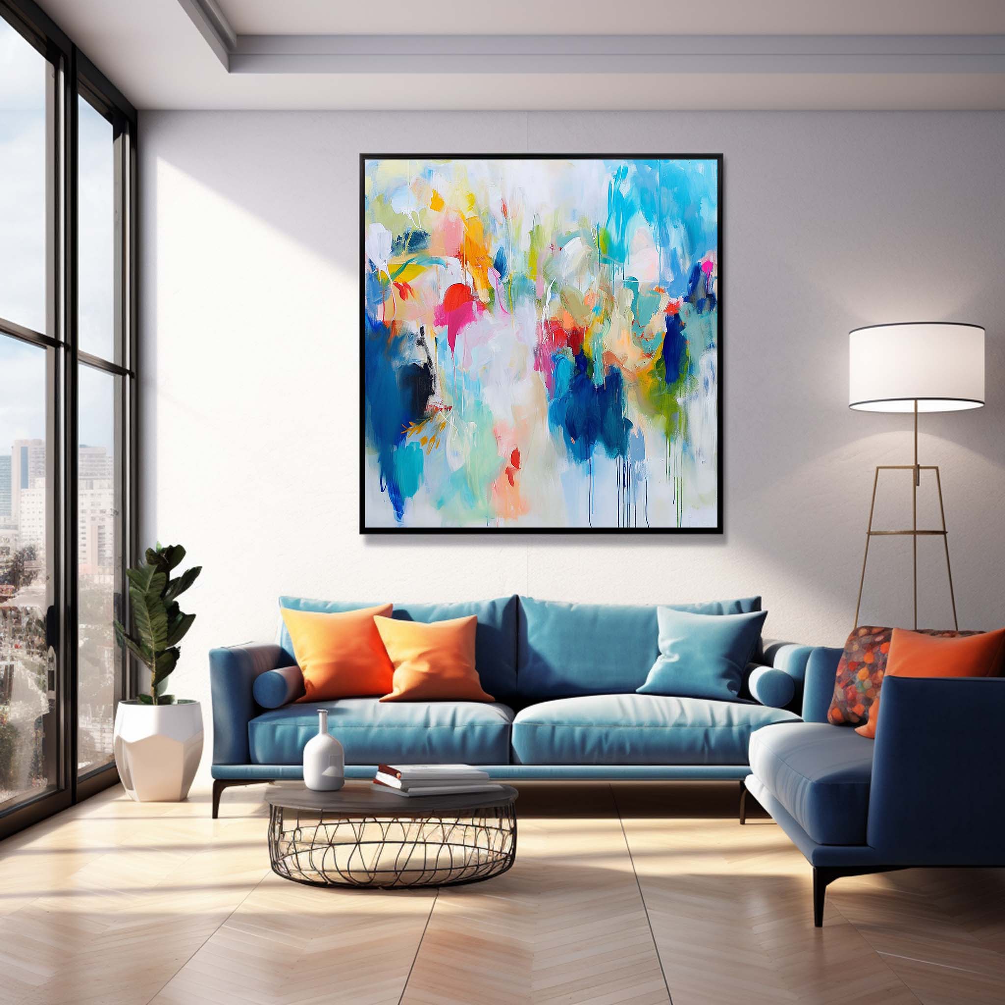 Colorful Original Hand Painted Wall Art Square Abstract Fine Art Canvas Contemporary Abstract Art For Sale