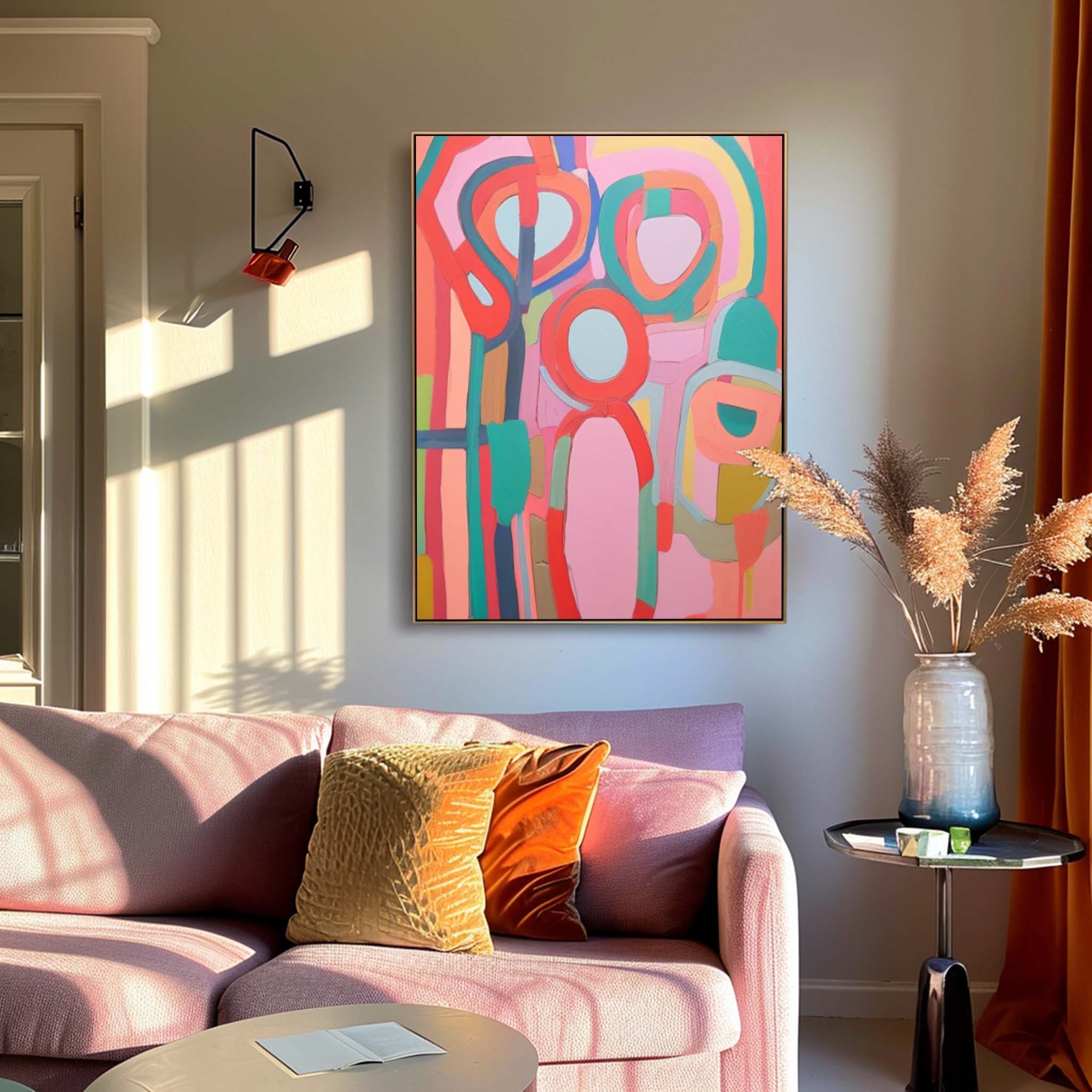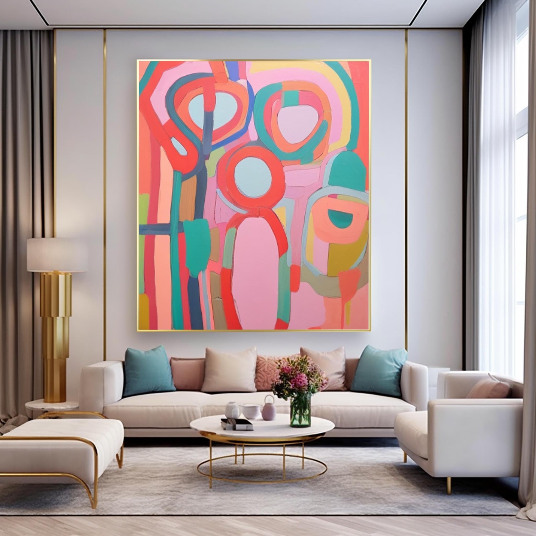 Extra Large Canvas Art Pink Original Abstract Oil Painting Modern Wall Art For Living Room