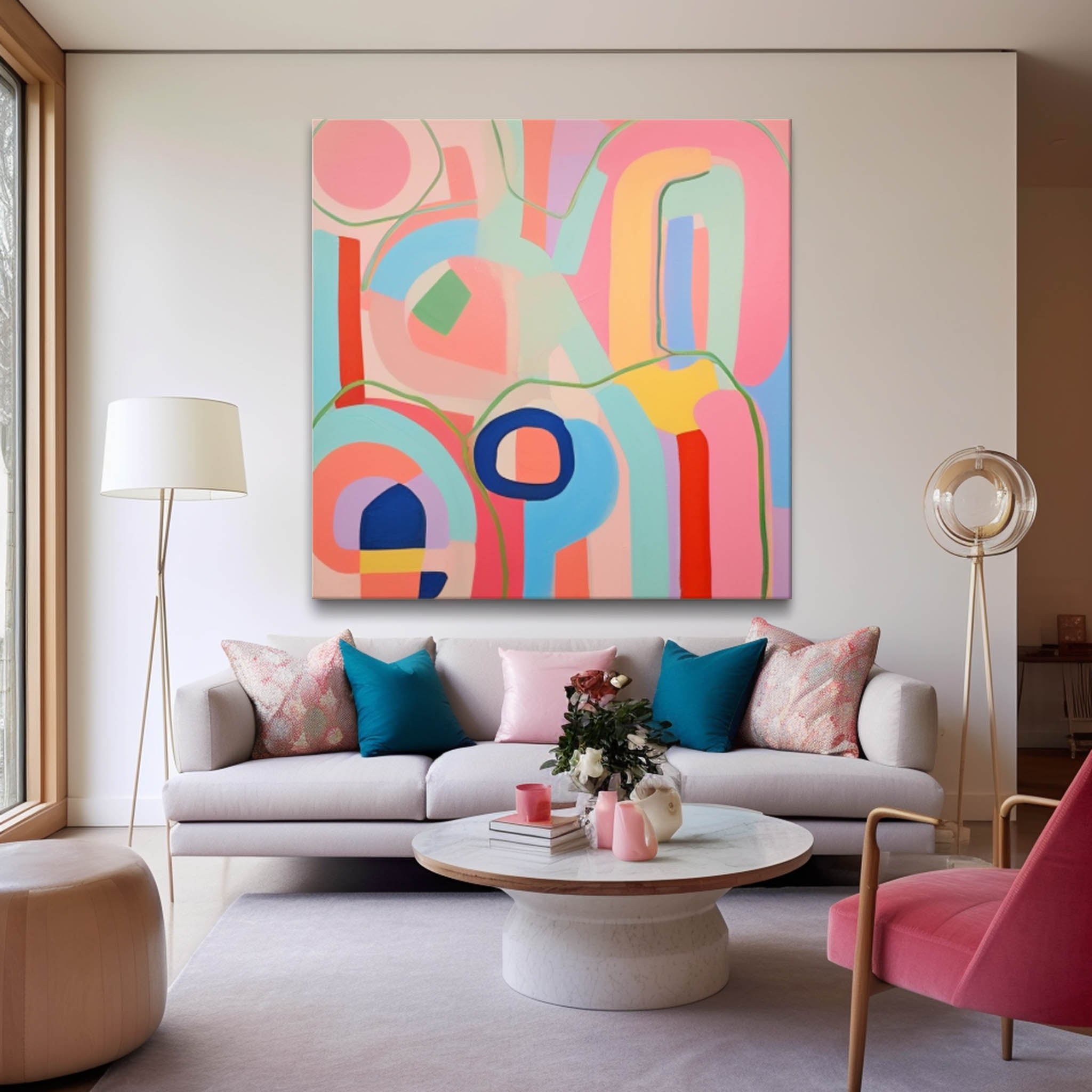 Tiny Canvas Painting Original Graffiti Lines Wall Art Contemporary New Pink Abstract Painting  Home Decor
