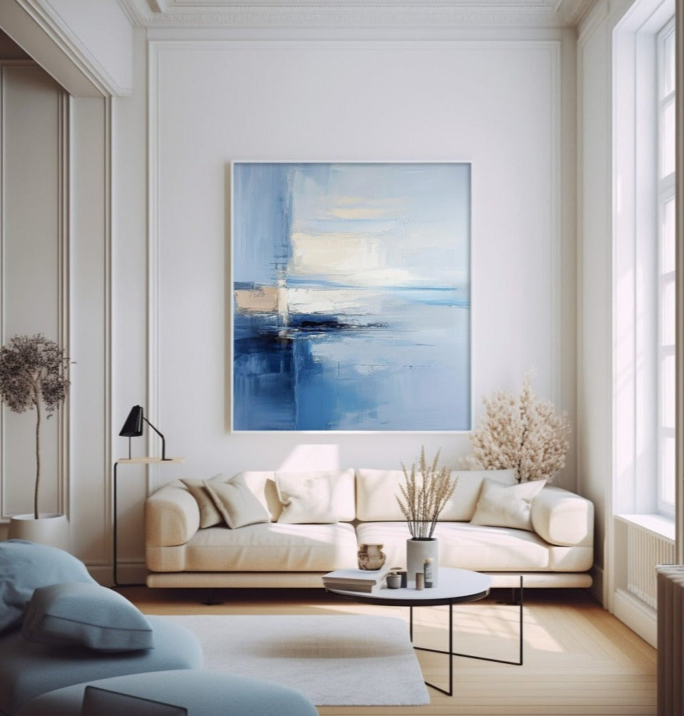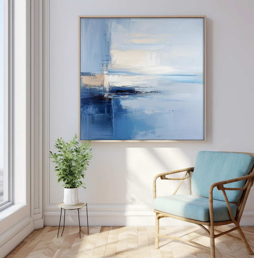 Original Blue Abstract Wall Art Big Modern Abstract Oil Painting Contemporary Art
