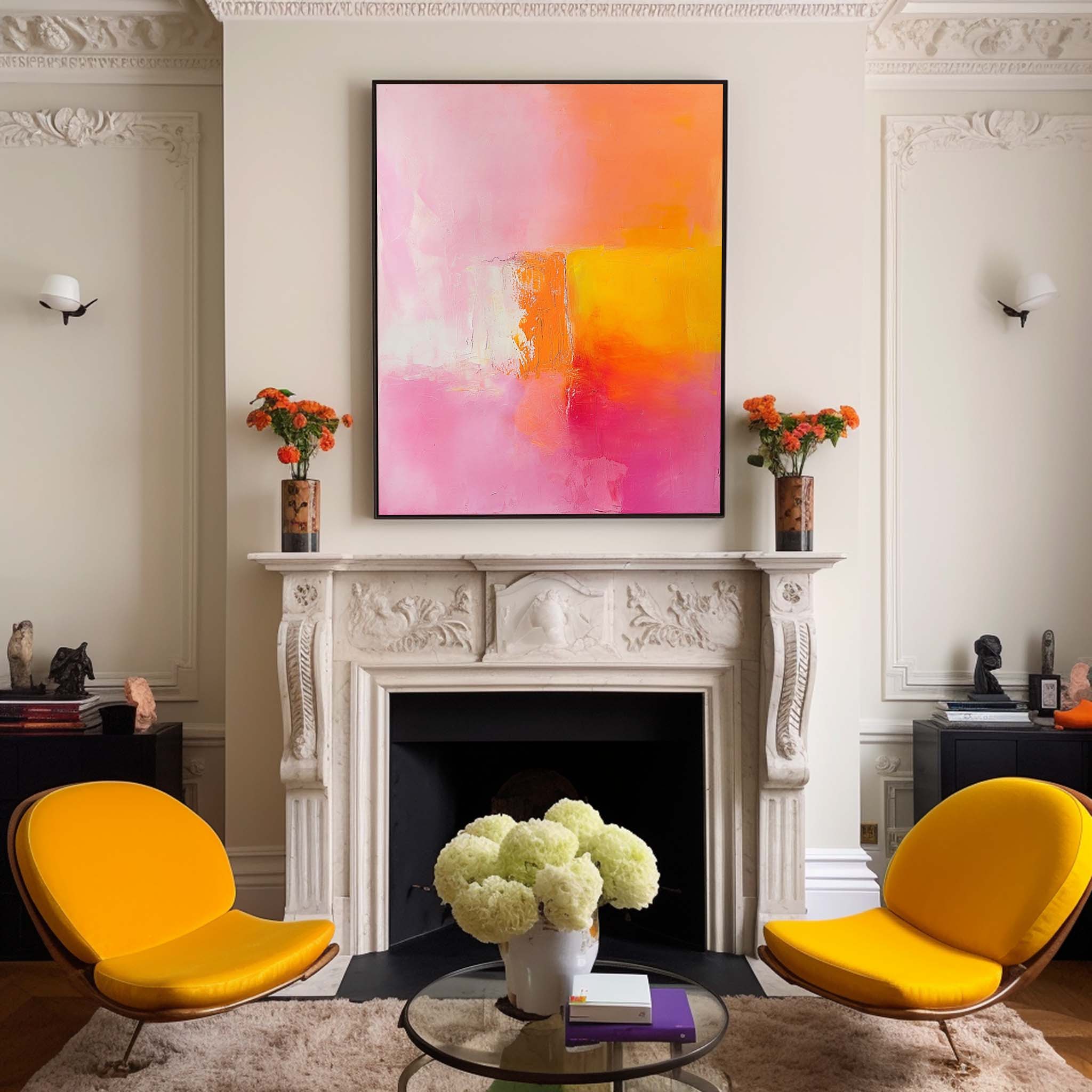 Pink And Yellow Modern Quality Large Art Famous Abstract Artwork Original Oil Painting On Canvas Home Decor