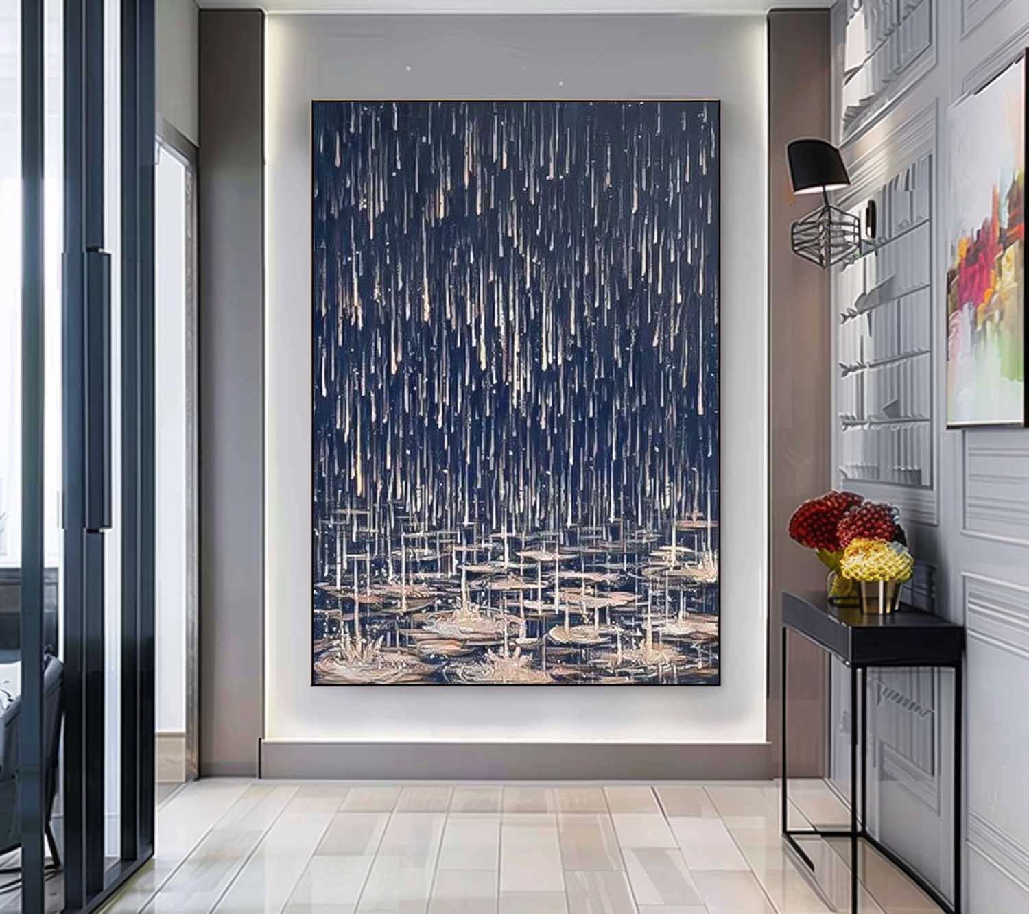 Realism Rain Abstract Wall Art Large Contemporary Raindrop Abstract Landscape Acrylic Painting On Canvas