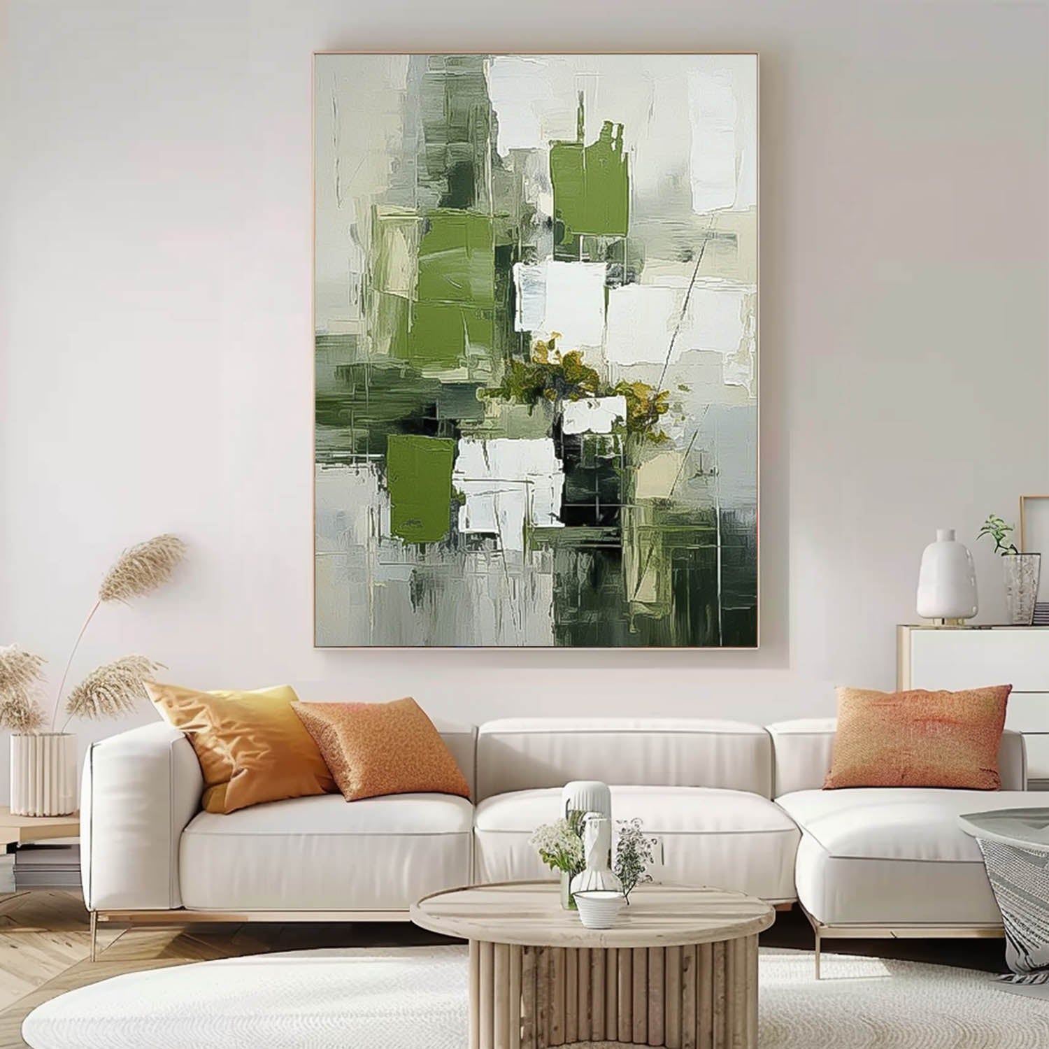Large Modern Acrylic Painting On Canvas Green Texture Abstract Oil Painting Original Geometry Artwork