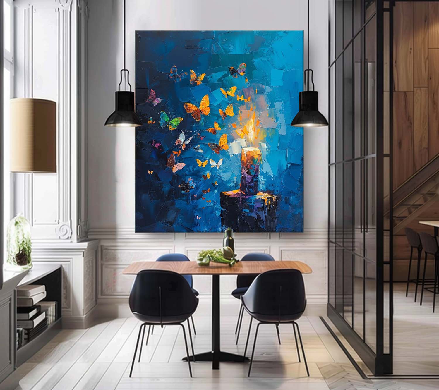 Abstract Still Life Painting Butterfly By Candlelight Acrylic Painting On Canvas Original Artwork Decor