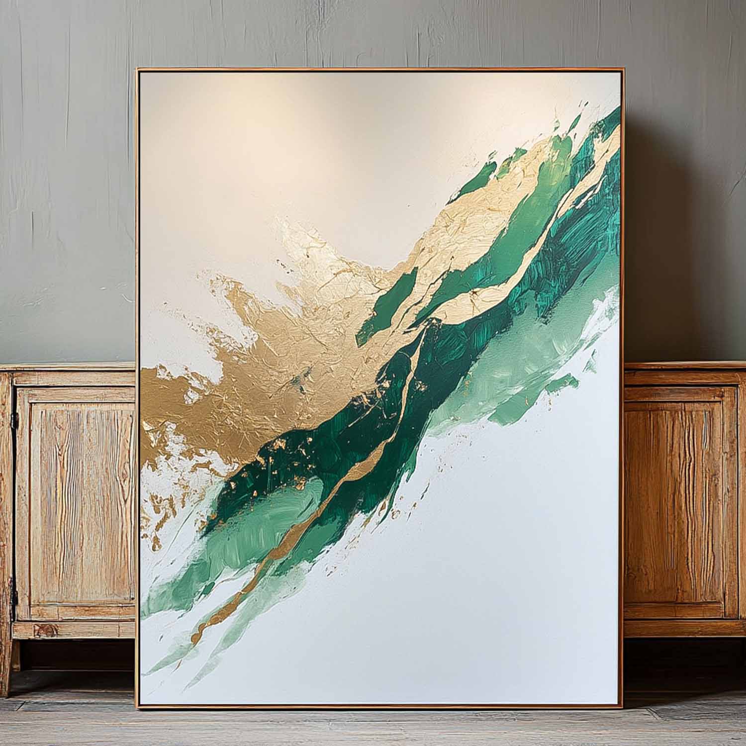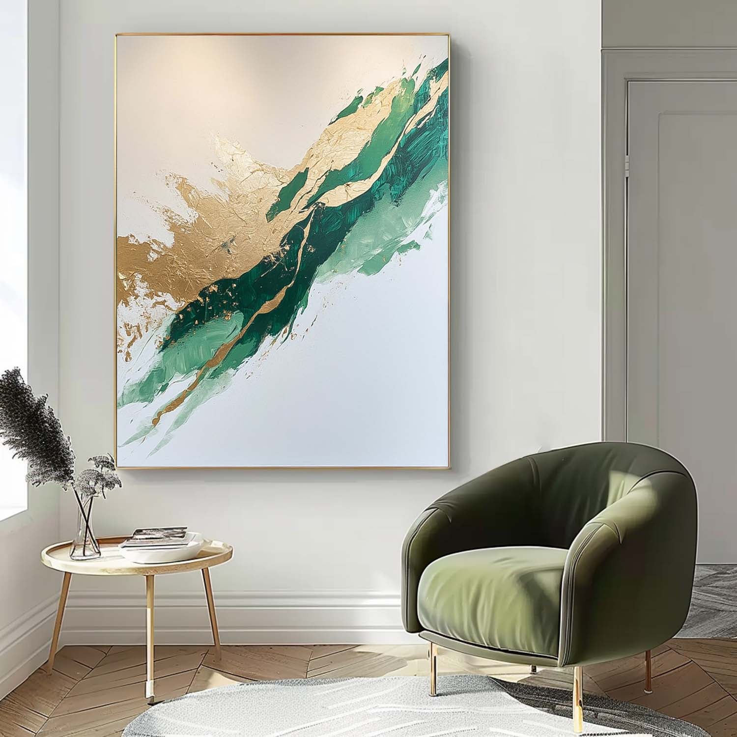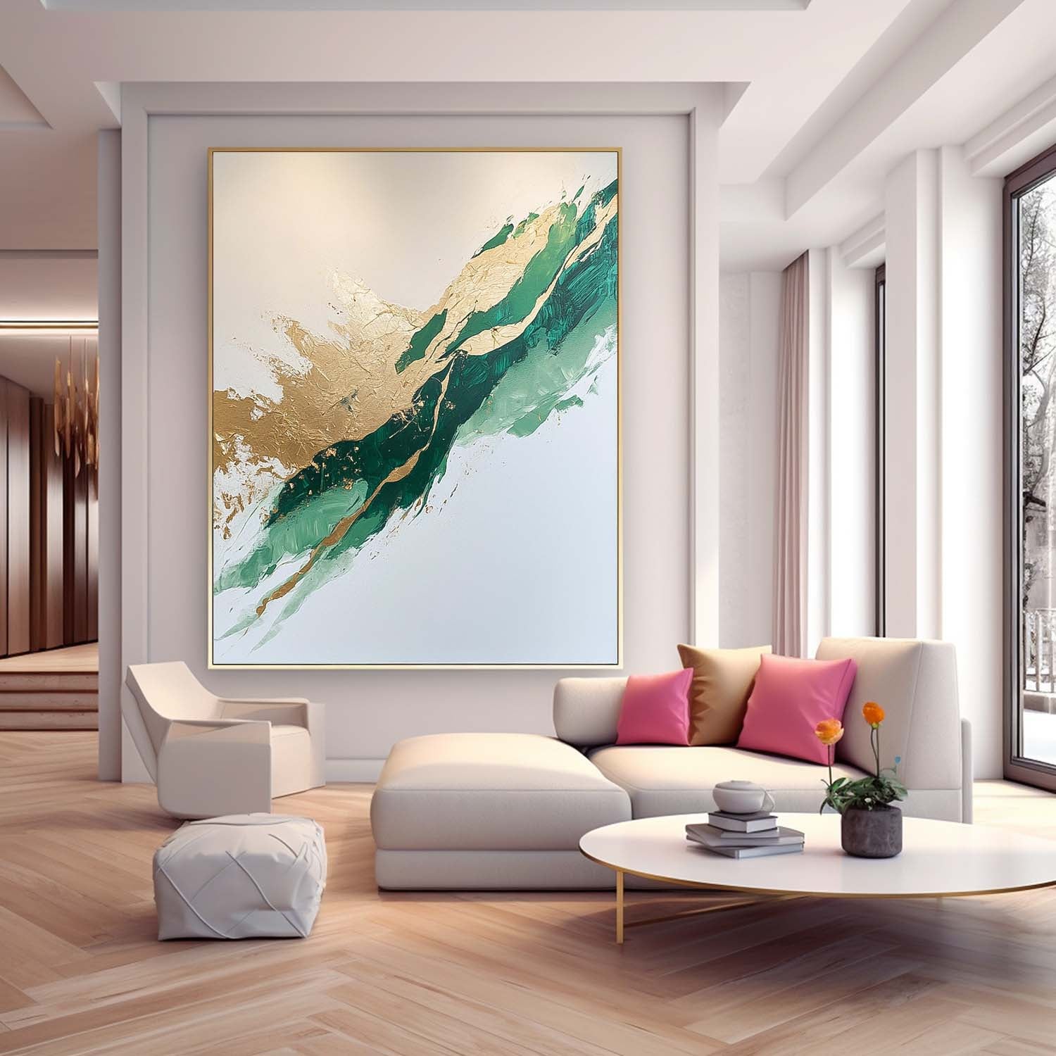 Large Green Modern Acrylic Painting On Canvas Gold Texture Abstract Oil Painting High Quality Original Artwork