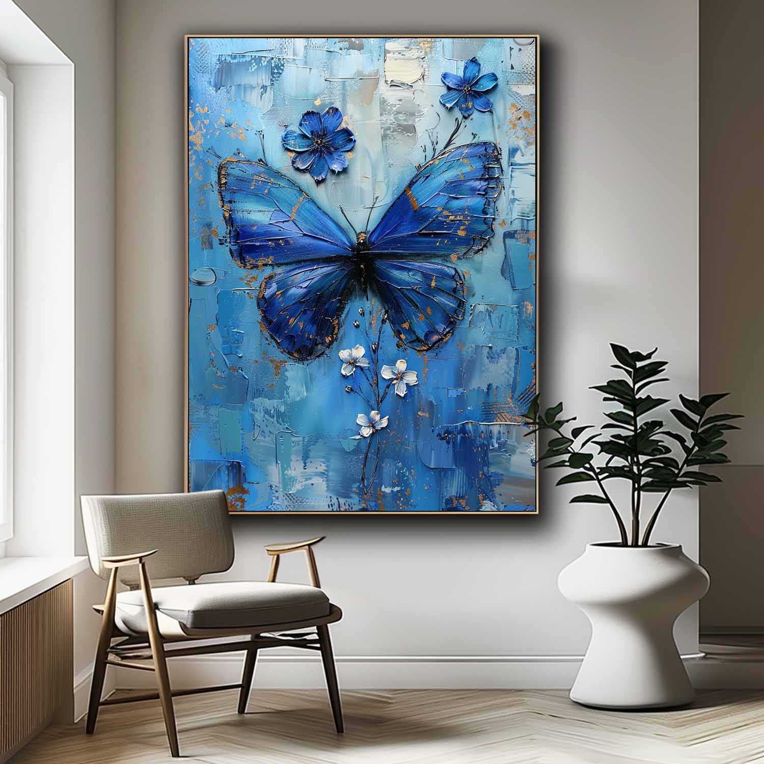 Original Artwork Impressionist Lovely Butterfly Wall Art Blue Oil Painting Modern Texture Oil Painting Framed