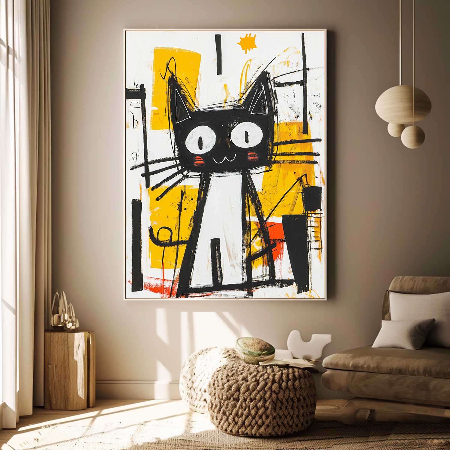 Modern Cute Kitten Texture Animal Oil Painting Graffiti Line Oil Painting Abstract Wall Art Decor