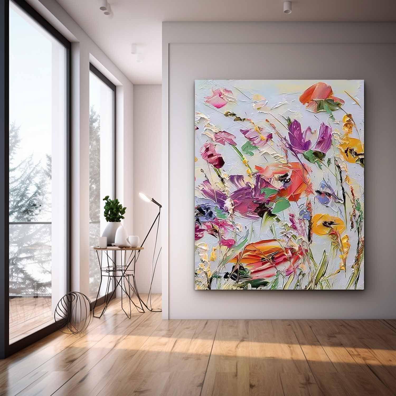 Colorful Floral Abstract Acrylic Knife Painting On Canvas Contemporary Flower Wall Art Boho Art