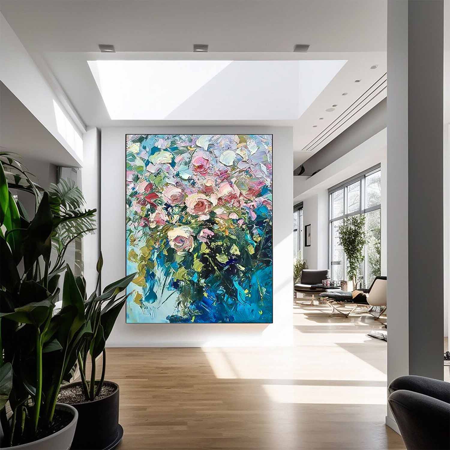 Pink Floral Abstract Acrylic Knife Painting On Canvas Contemporary Flower Wall Art Rustic Art