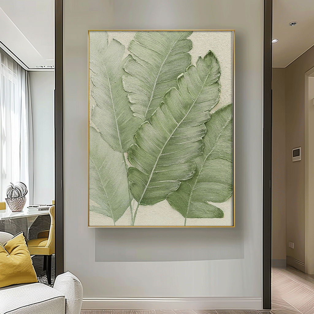 Large Thick Texture Abstract Green Leaf Paintings Contemporary Leaf Paintings Summer Painting Framed Wall Art