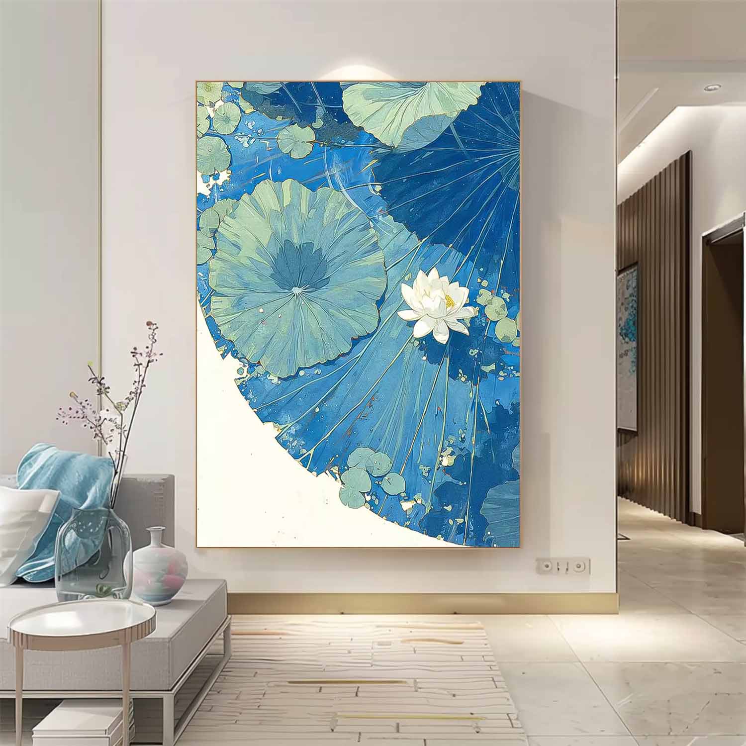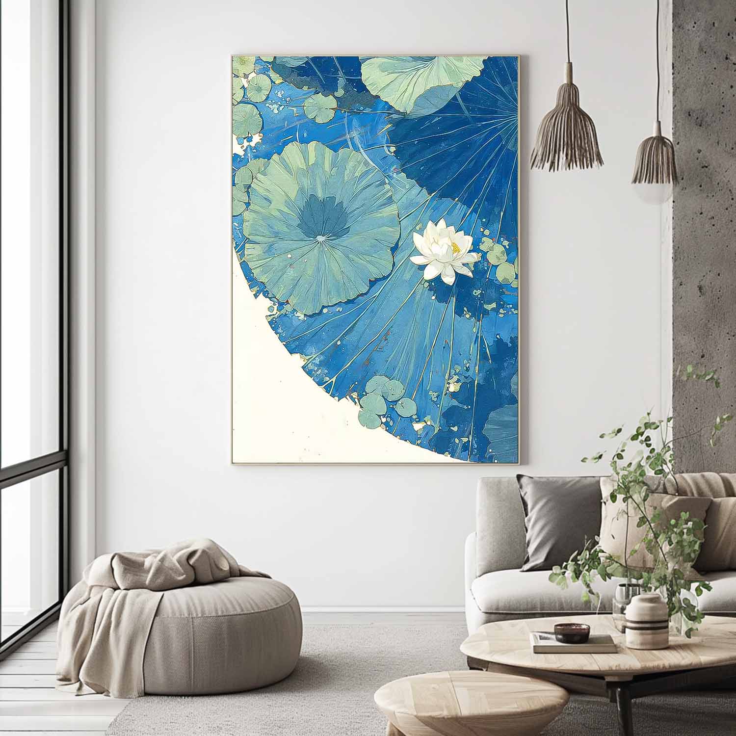 Abstract Blue Lotus Leaf Oil Painting On Canvas Big Original Texture Beautiful Lotus Artwork Framed Home Decor