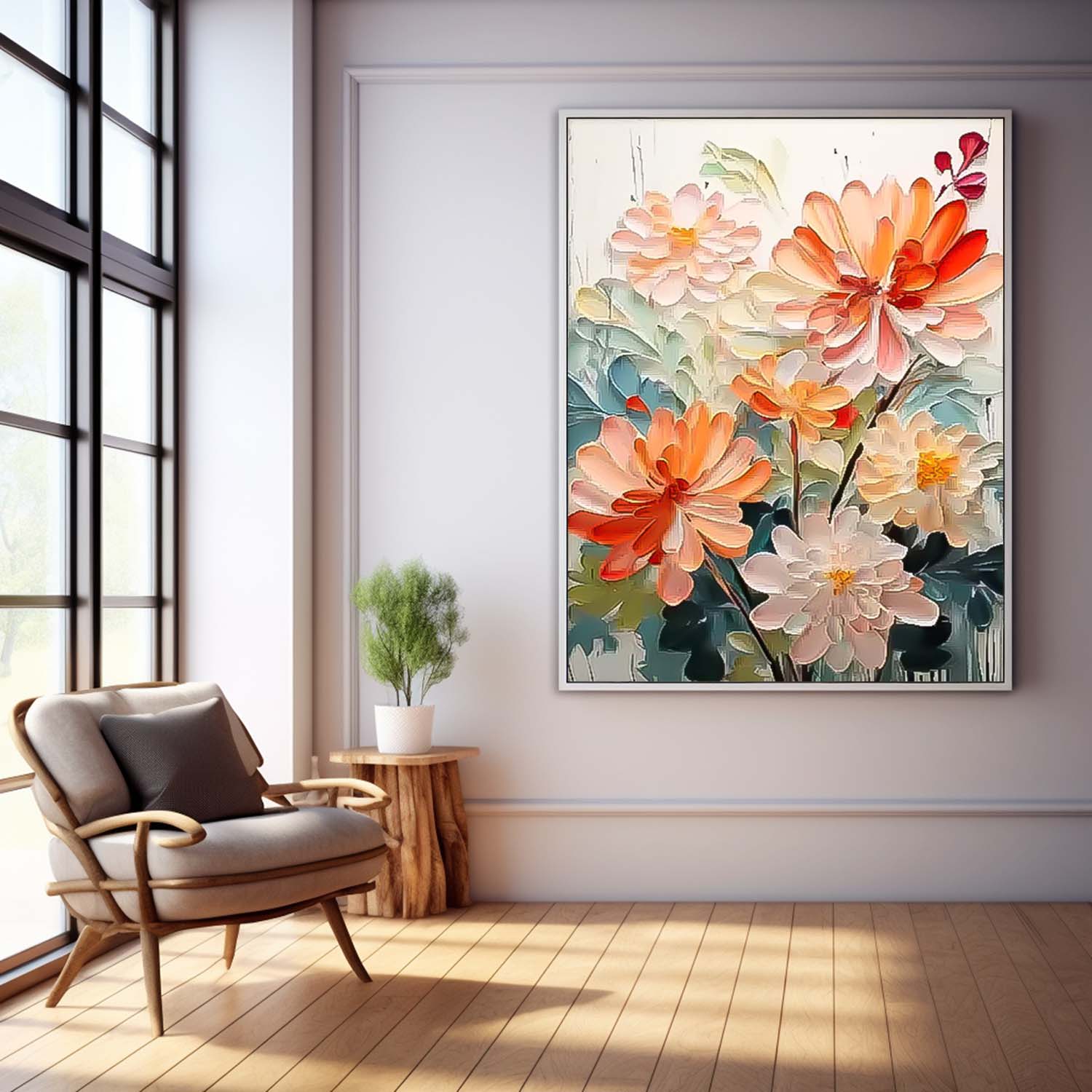 Big Original Texture Beautiful Flowers Artwork Framed Abstract Lovely Flower Oil Painting On Canvas Home Decor