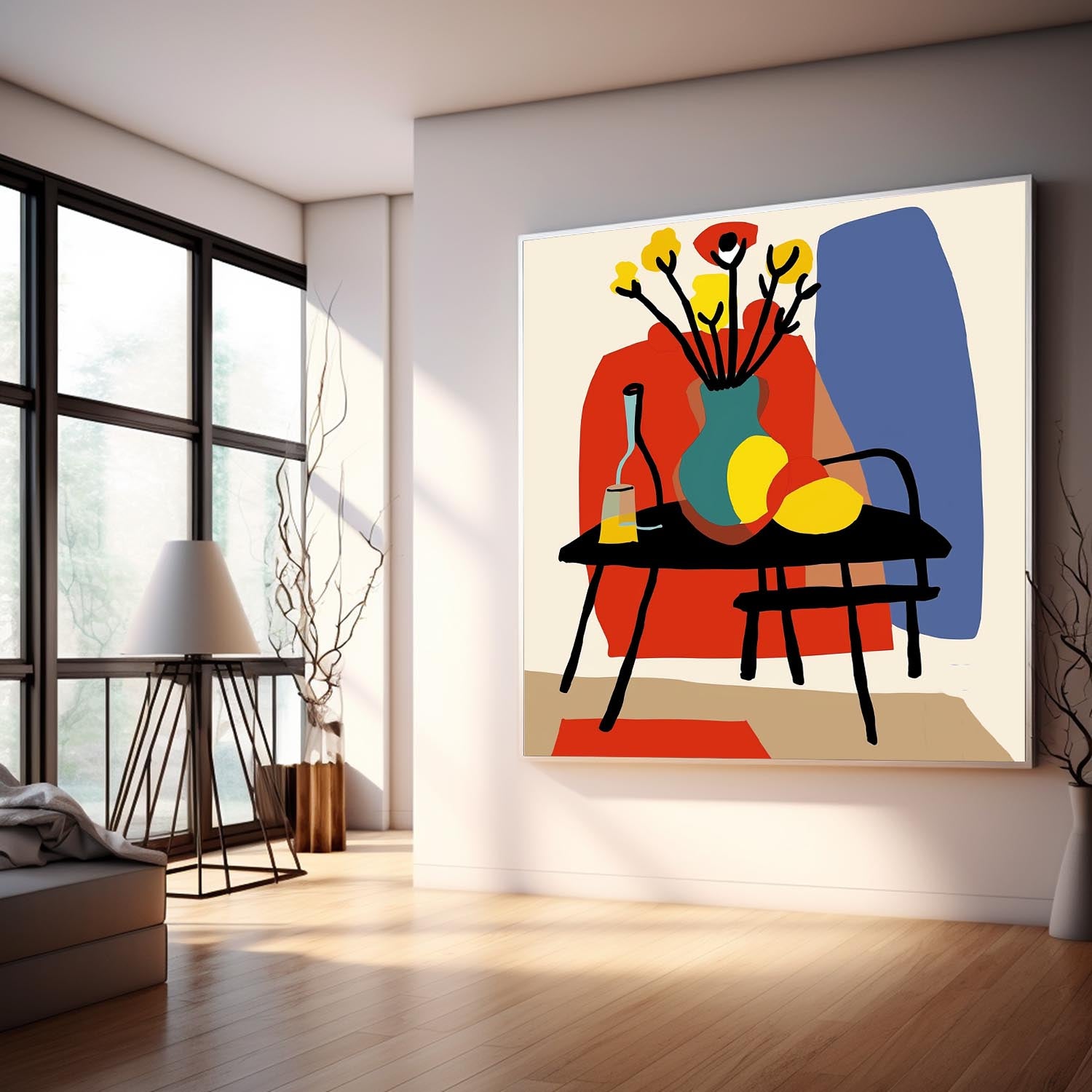 Large Realism Flowers Painting Beautiful Vase Artwork Square Contemporary Bright Paintings Wall Art