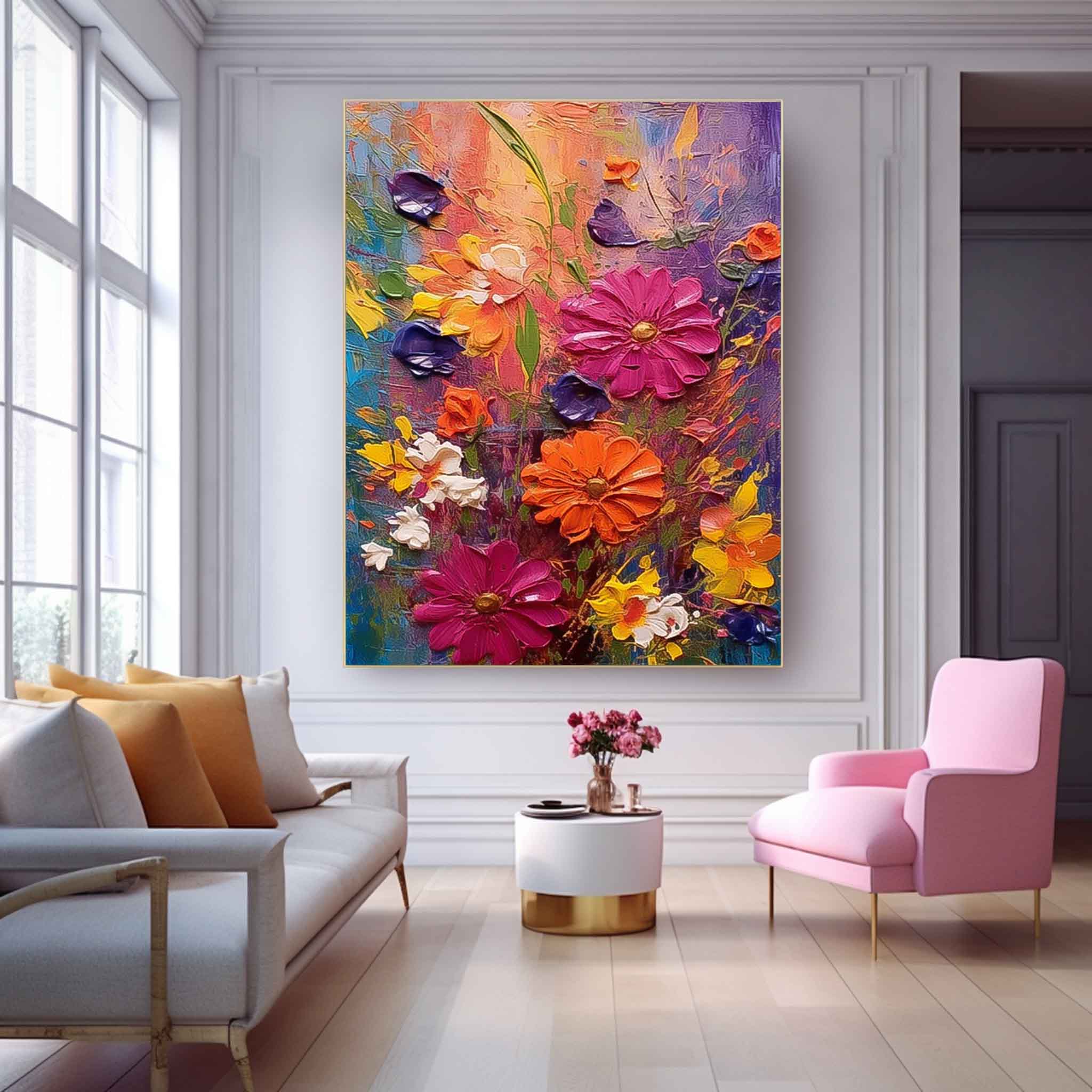 Original Floral Painting Abstract Flower Acrylic Painting On Canvas Boho Wall Decor Large Textured Wall Art Custom Home Decor