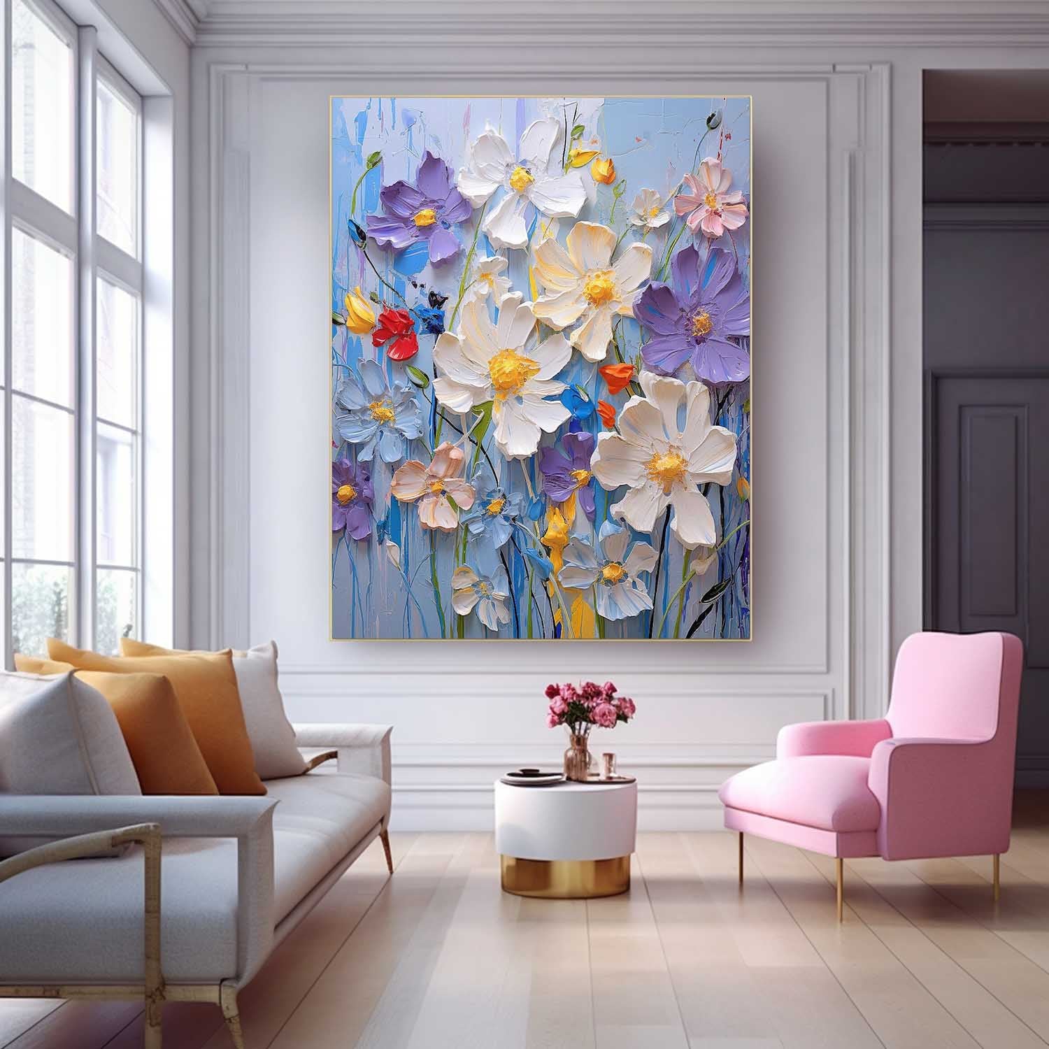 Large Lovely Textured Art Abstract Flower Acrylic Painting On Canvas Original Floral Painting Home Decor