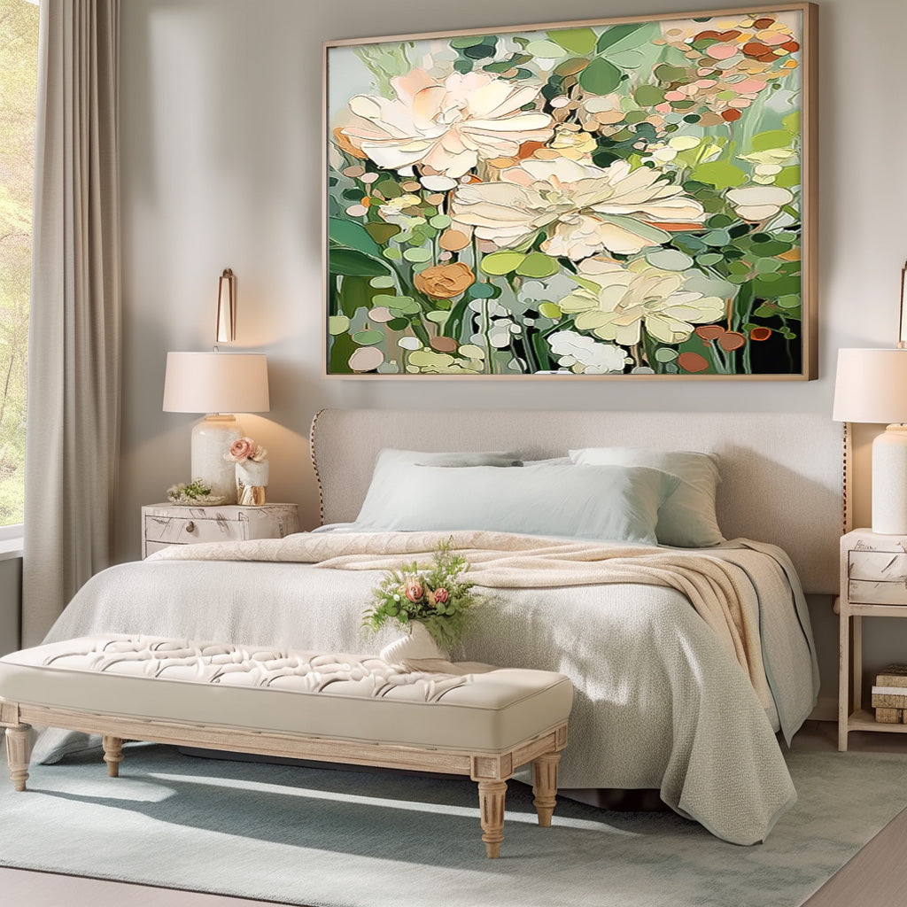 Big Flower Texture Artwork Original Abstract Green Leaves Oil Painting On Canvas Home Decor Gift