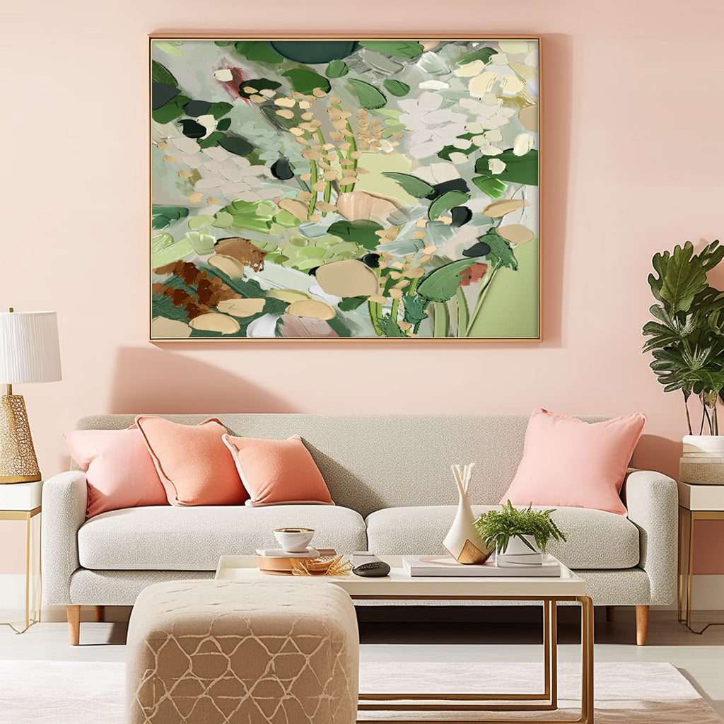 Horizontal Flower Texture Artwork Original Abstract Green Leaves Oil Painting On Canvas Home Decor Gift