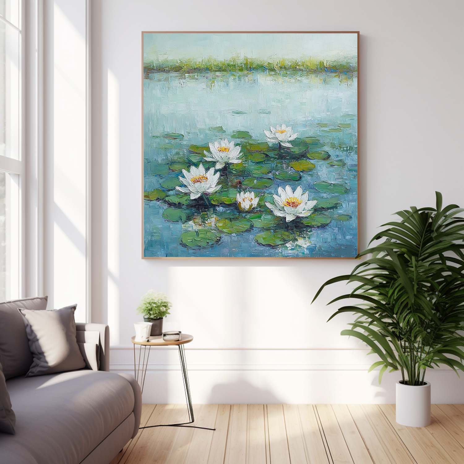 Large Textured Abstract Flower Paintings Square Contemporary White Lotus Floral Painting Original Artwork