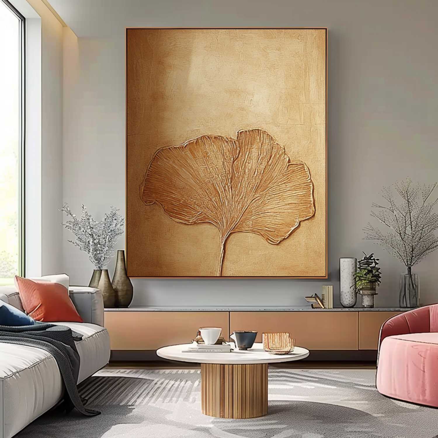 Original Ginkgo Leaf Painting Exquisite Ginkgo Leaf Acrylic Painting Textured Brown Floral Art For Living Room