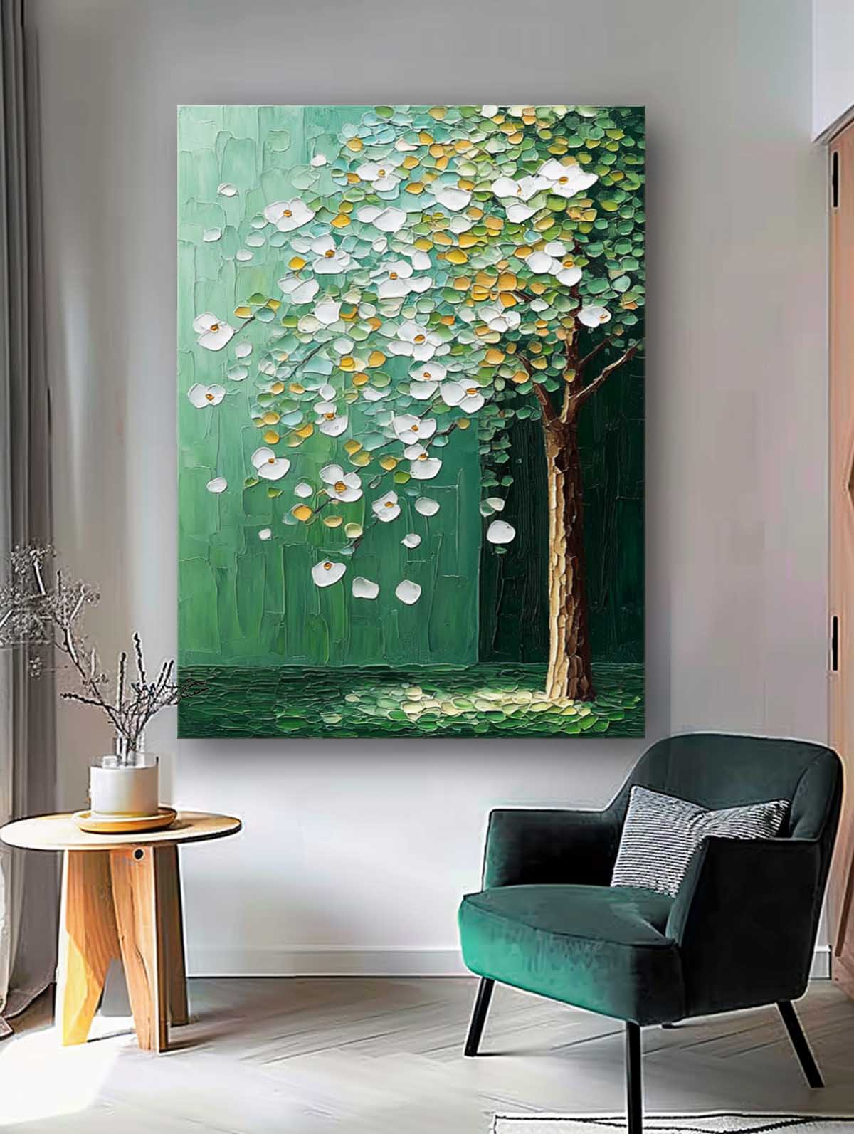 Beautiful Green Tree Painting Acrylic Textured Floral Art Impressionist Plant Paintings For Living Room