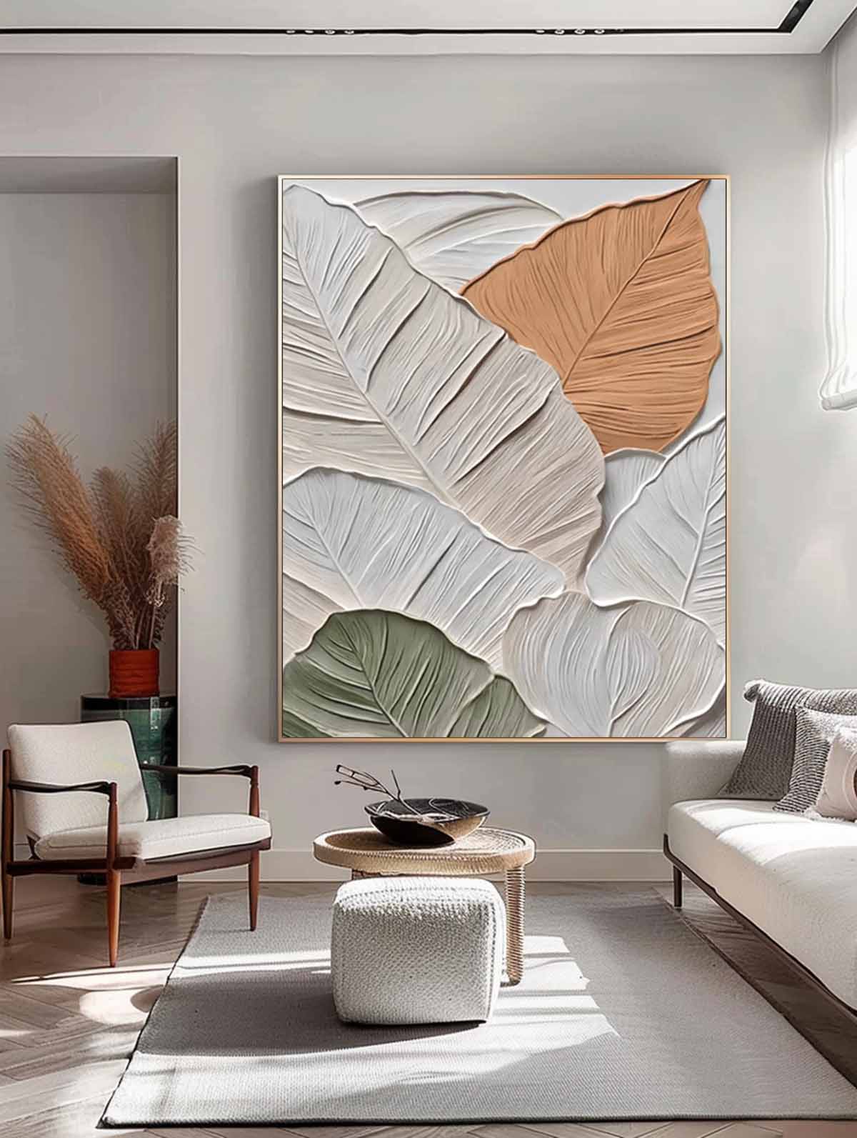 3D Leaf Painting Acrylic Textured Foliage Art Impressionist Plant Paintings For Living Roomleaf