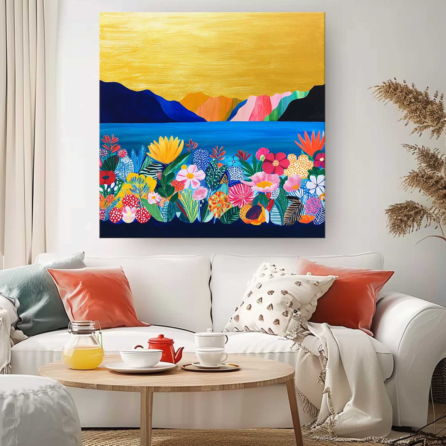 Floral Painting on Canvas Large Illustration style Wall Art Original Flower Bush Botanical Square Artwork