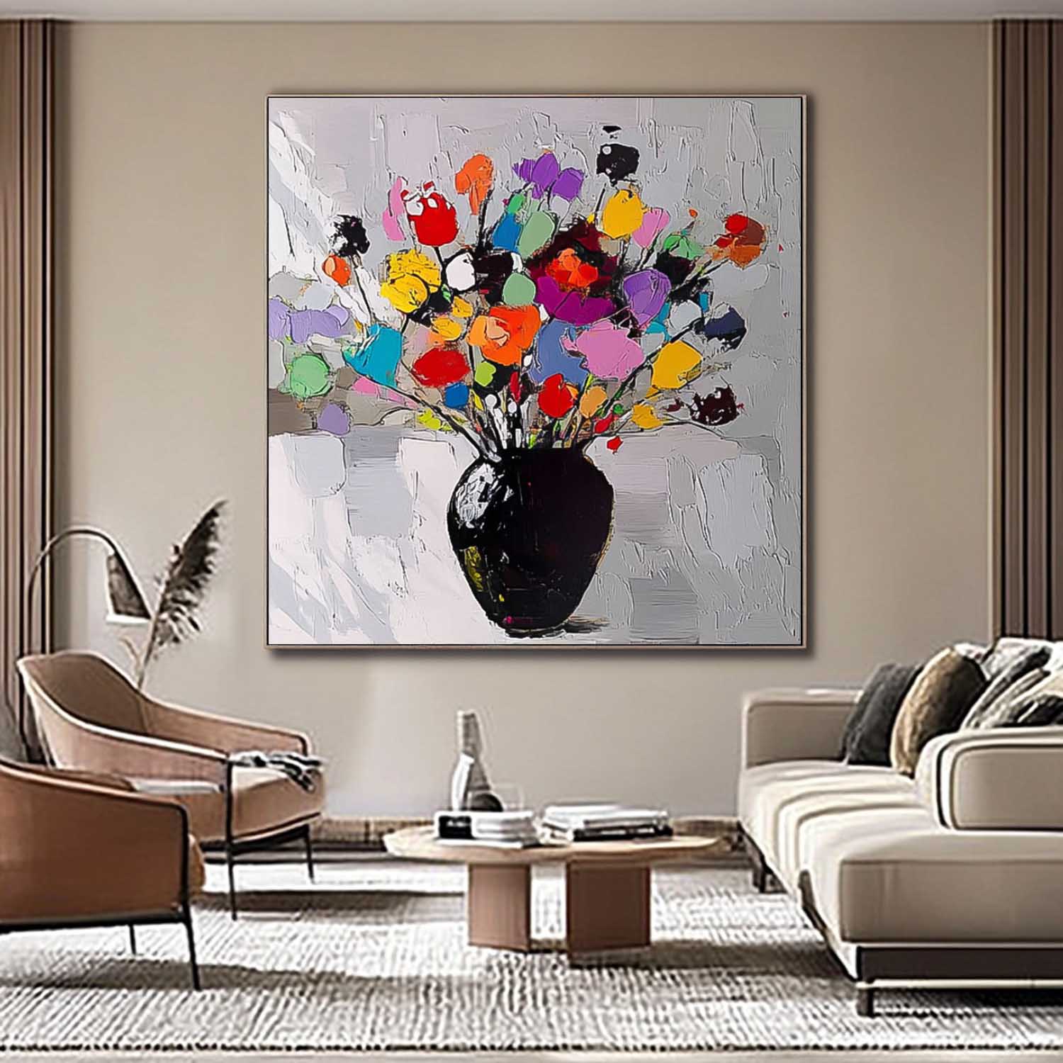 Large Color Handmade Wall Art Original Abstract Flower Vase Artwork Floral Texture Painting On Canvas