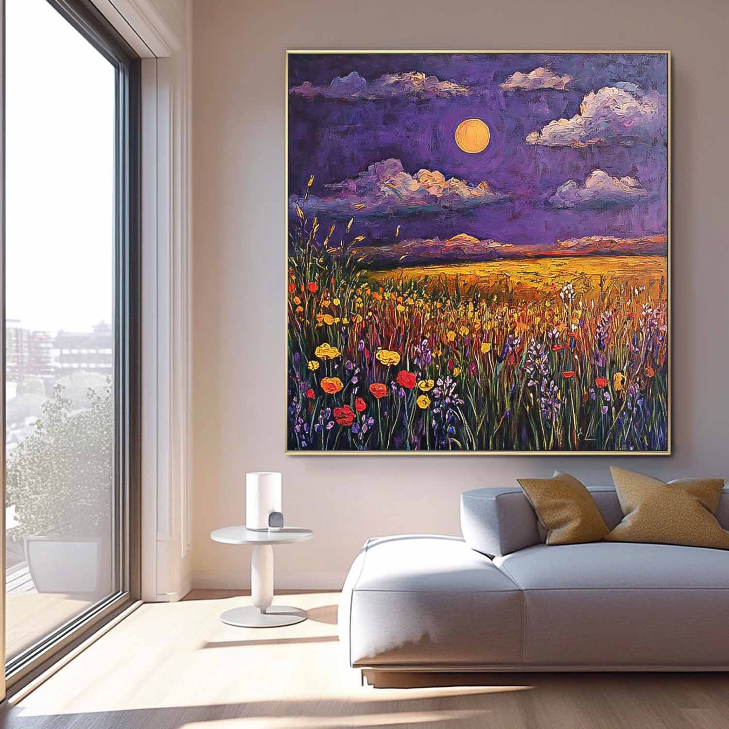 Abstract Purple Scenery Painting Original Landscape Oil Painting Large Spring Wall Art Living Room Decor