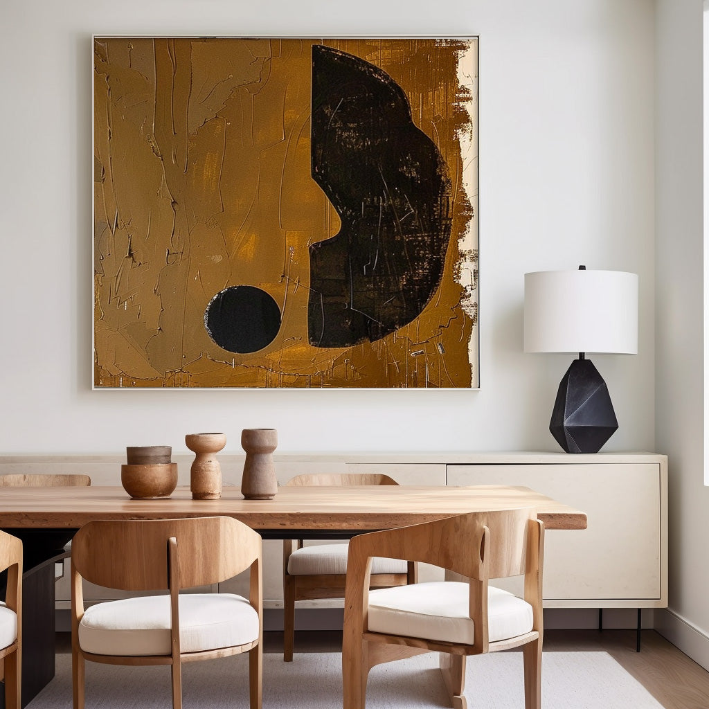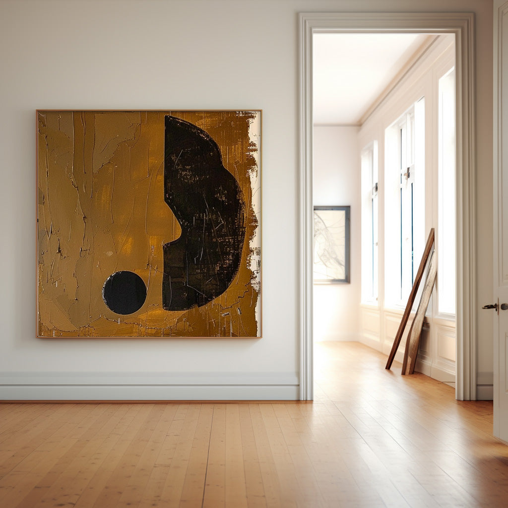 Brown Modern Minimalist Canvas Painting Acrylic Large Abstract Question Mark Wall Art Framed Wall Decor