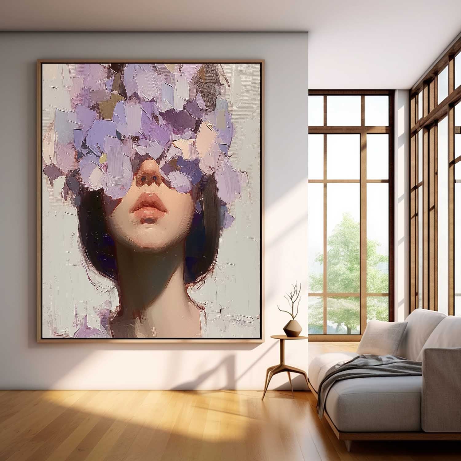 Abstract Lady Painting Woman Face Painting Large Faceless Portrait Artwork Original Flower Figurative Canvas Art Framed Woman Art Home Decor