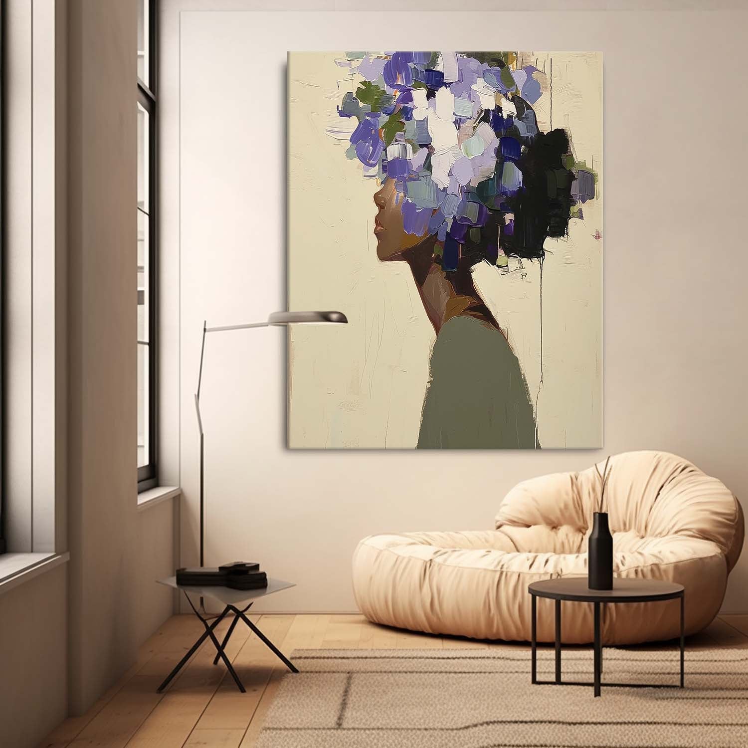 Original Flower Figurative Canvas Art Framed Woman Art Abstract Lady Painting Woman Face Painting Large Faceless Portrait Artwork Home Decor