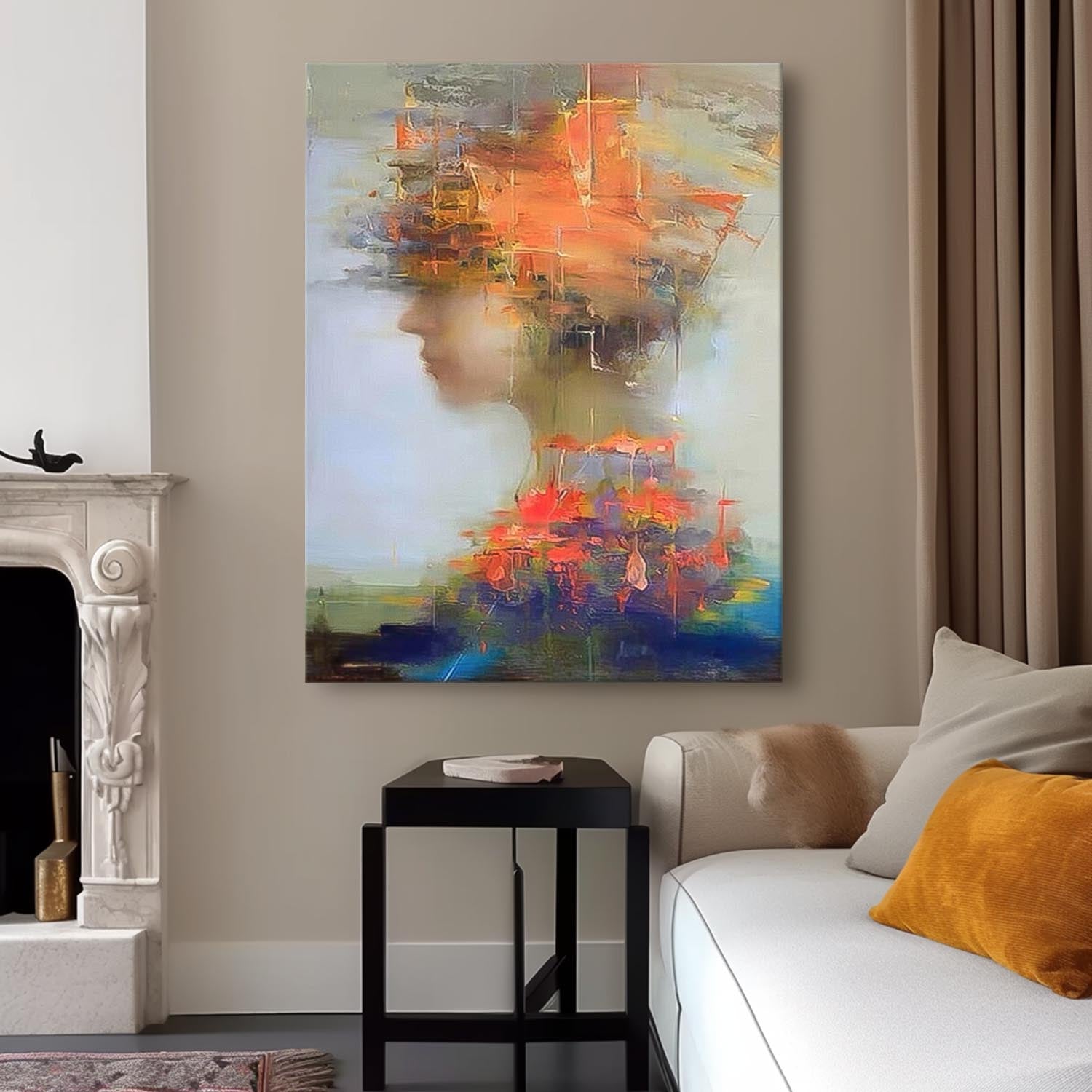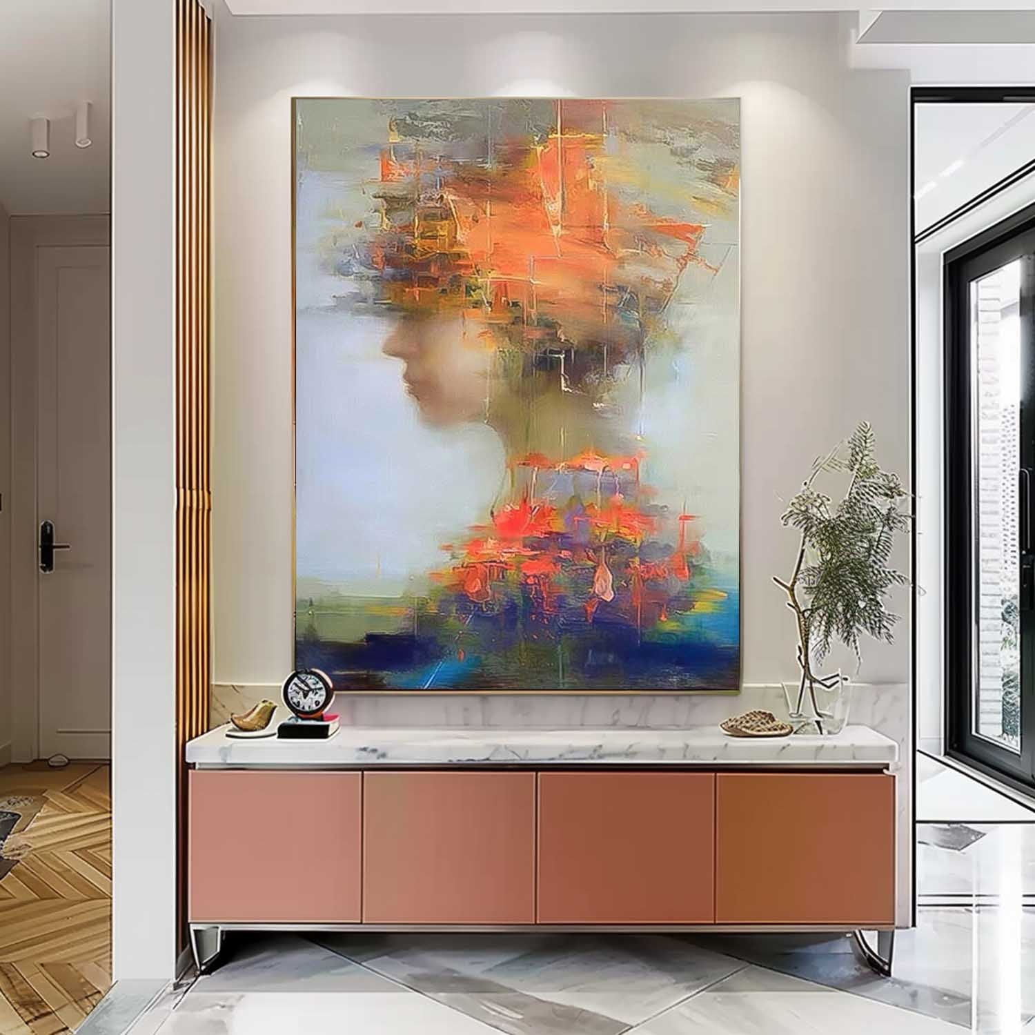 Large Faceless Portrait Painting Abstract Lady Painting Woman Face Artwork Original Wall Art Figurative Canvas Art Framed Woman Home Decor