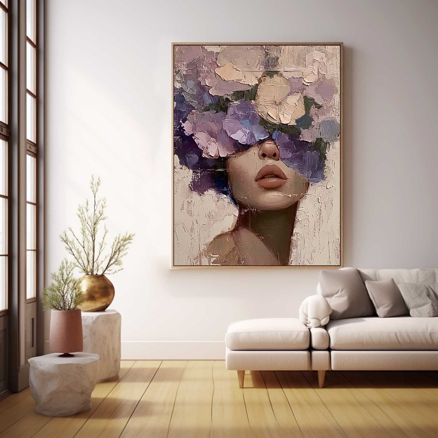 Beautiful Flower Woman Painting Texture Flower Girl Canvas Art Large Contemporary Figurative Art