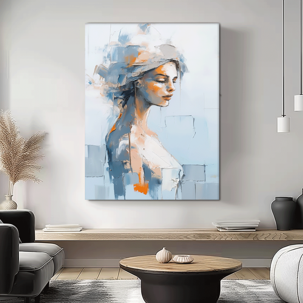 Original Blue Wall Art Abstract Lady Painting Woman Face Artwork Large Portrait Painting For Living Room