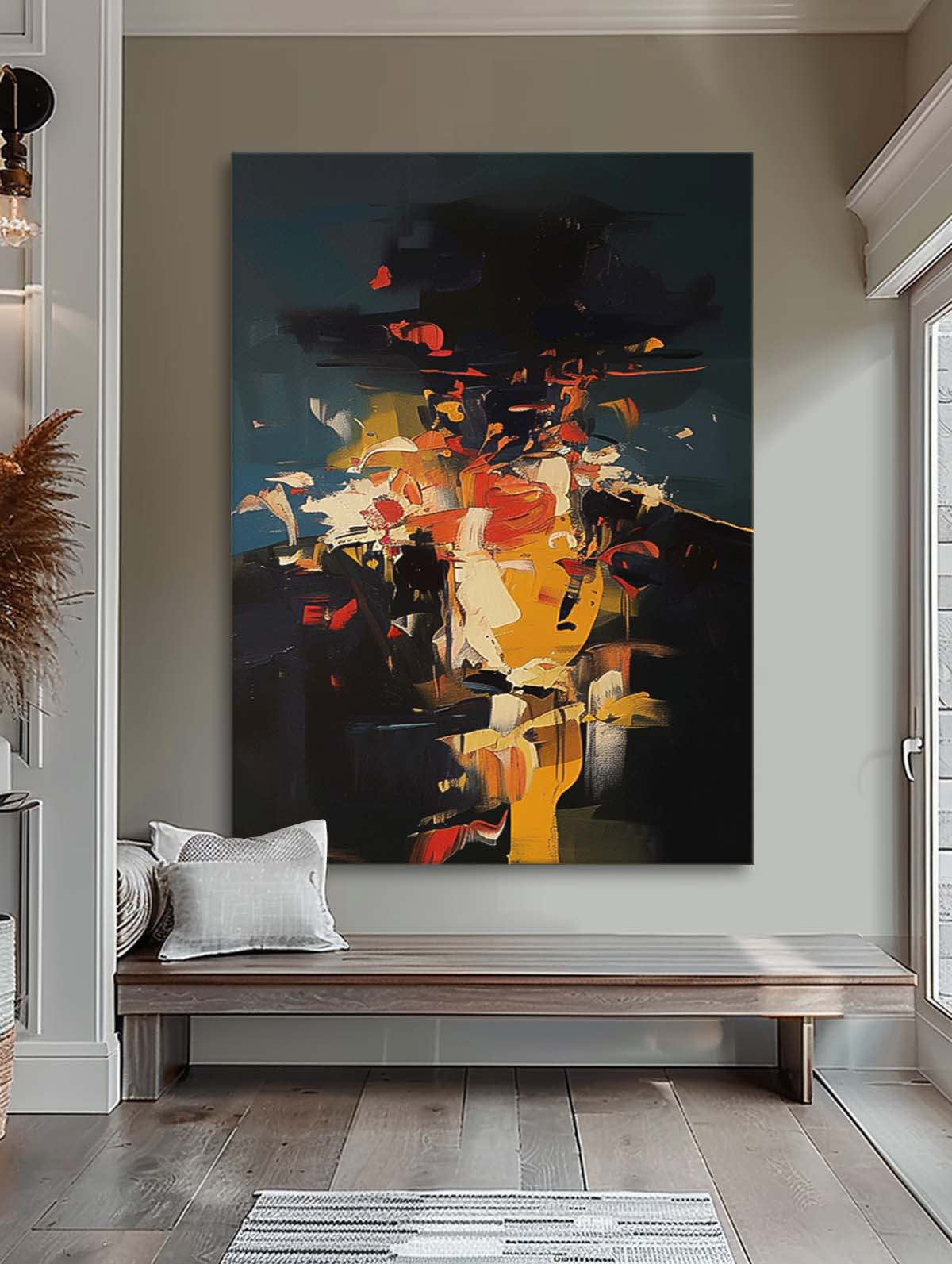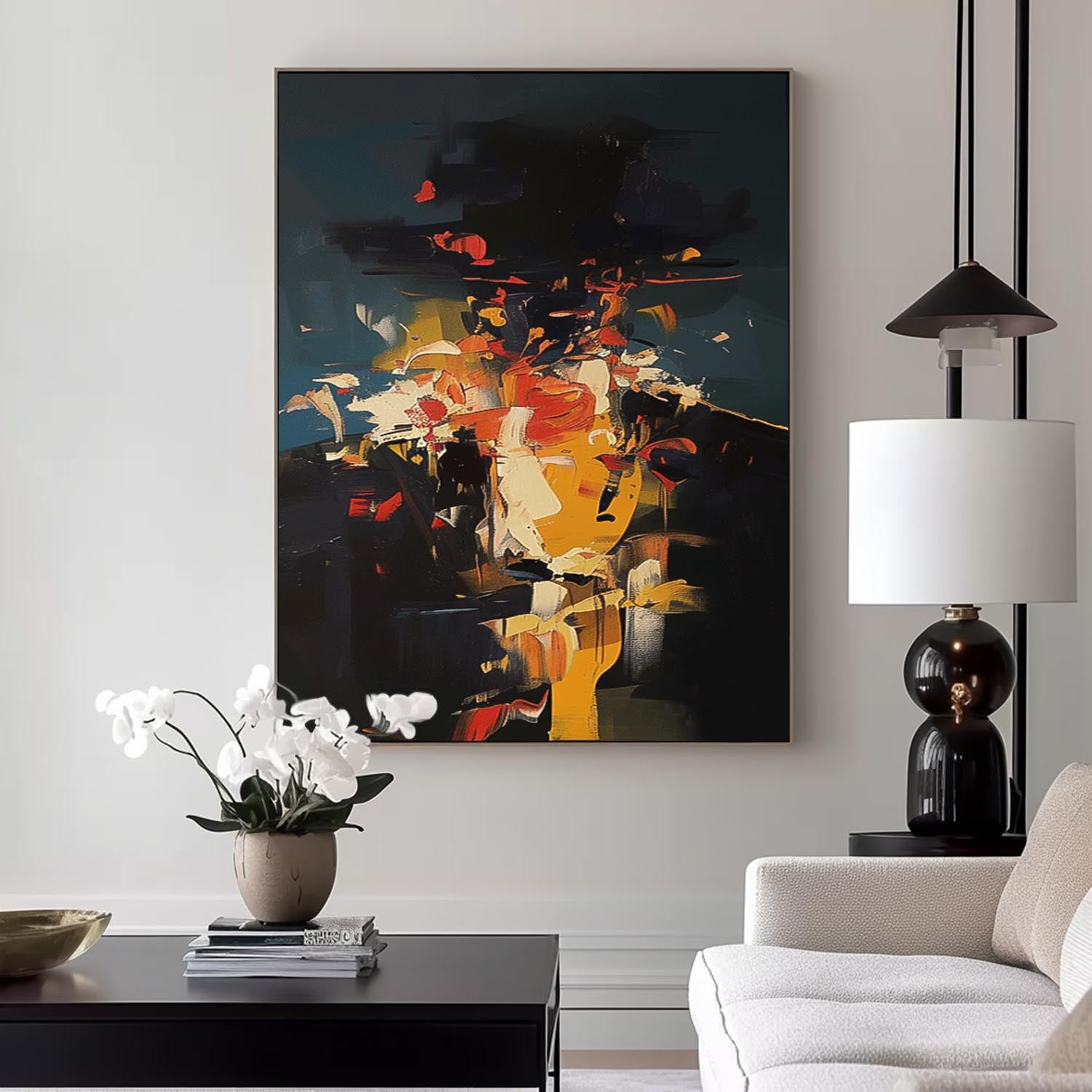 Black Series Large Portrait Painting Original Cool Man Wall Art Abstract Faceless Artwork For Living Room