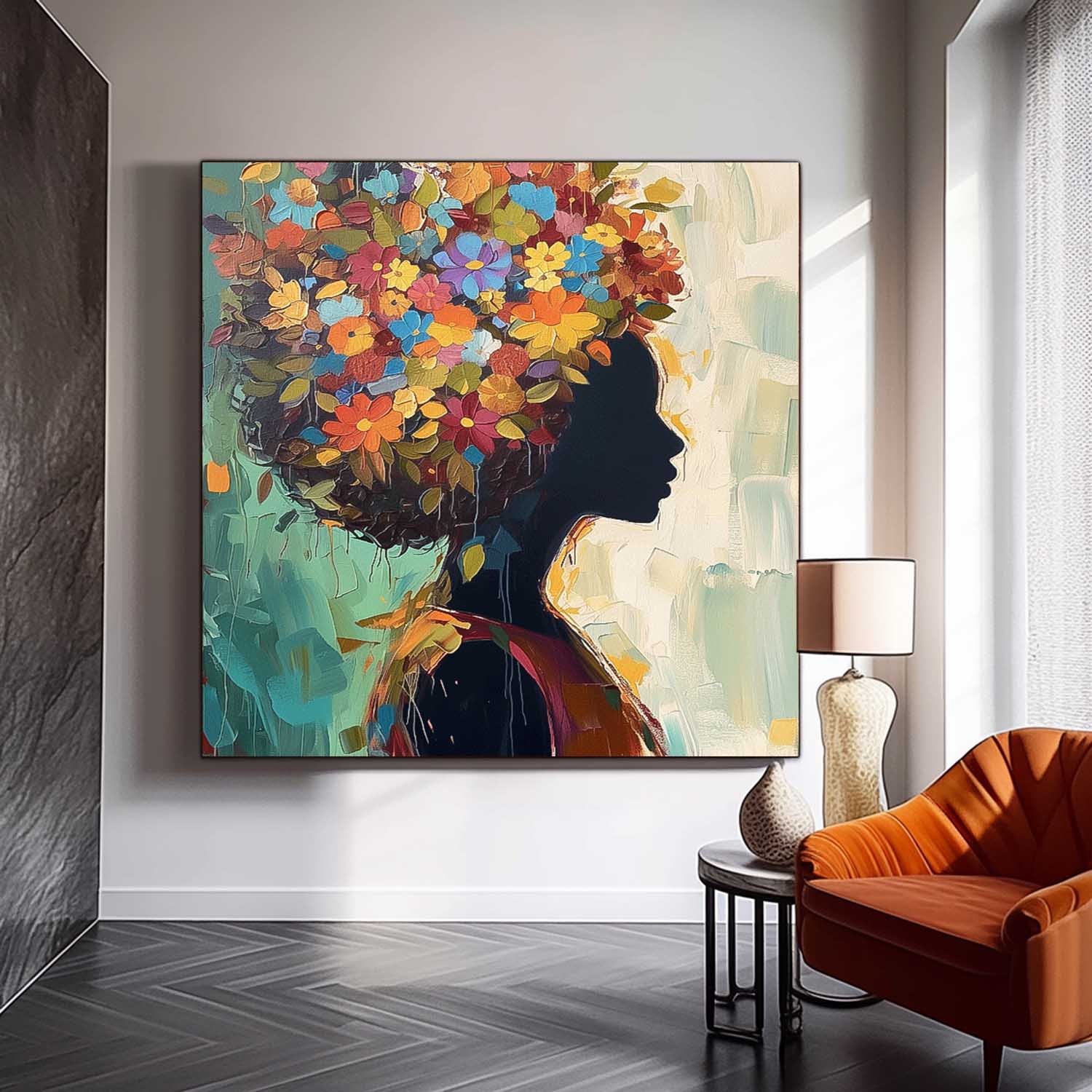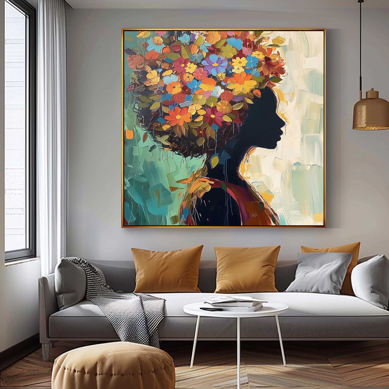 Color Texture Shadow Portrait Large Wall Art Original Beautiful Flower Figurative Painting Canvas Home Decor