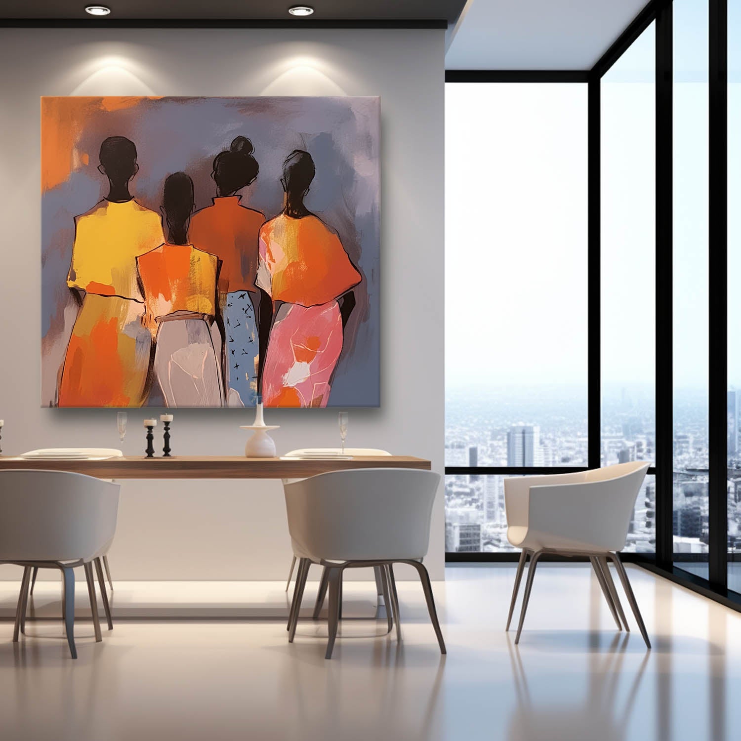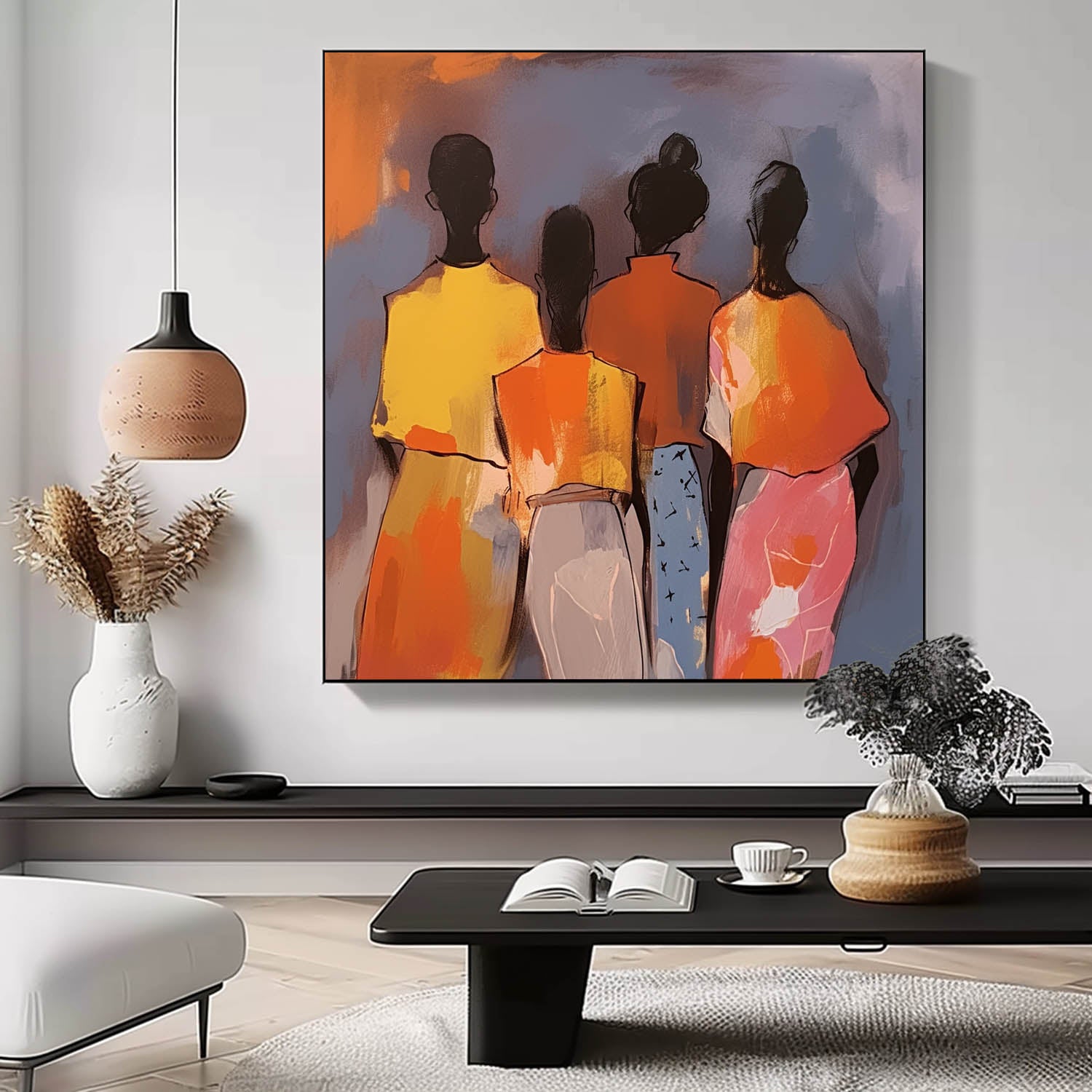 Warm Colors Four people's backs Wall Art Original Beautiful Painting Canvas Large Square Artwork Home Decor